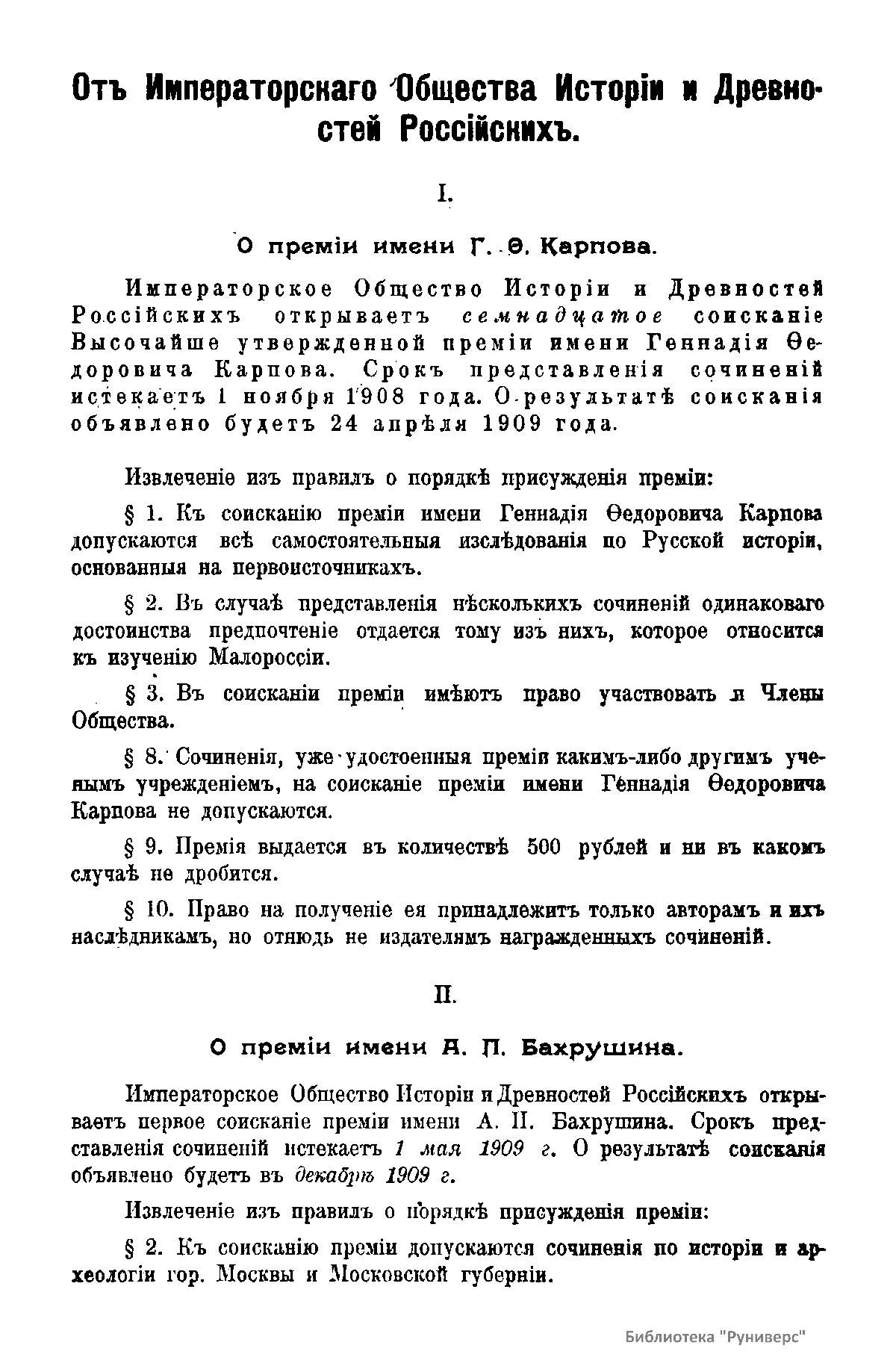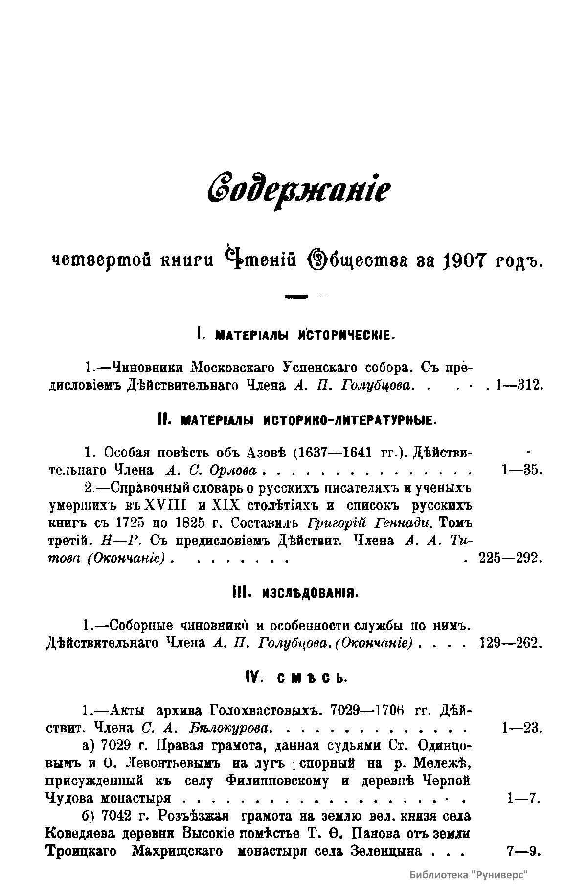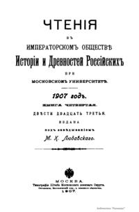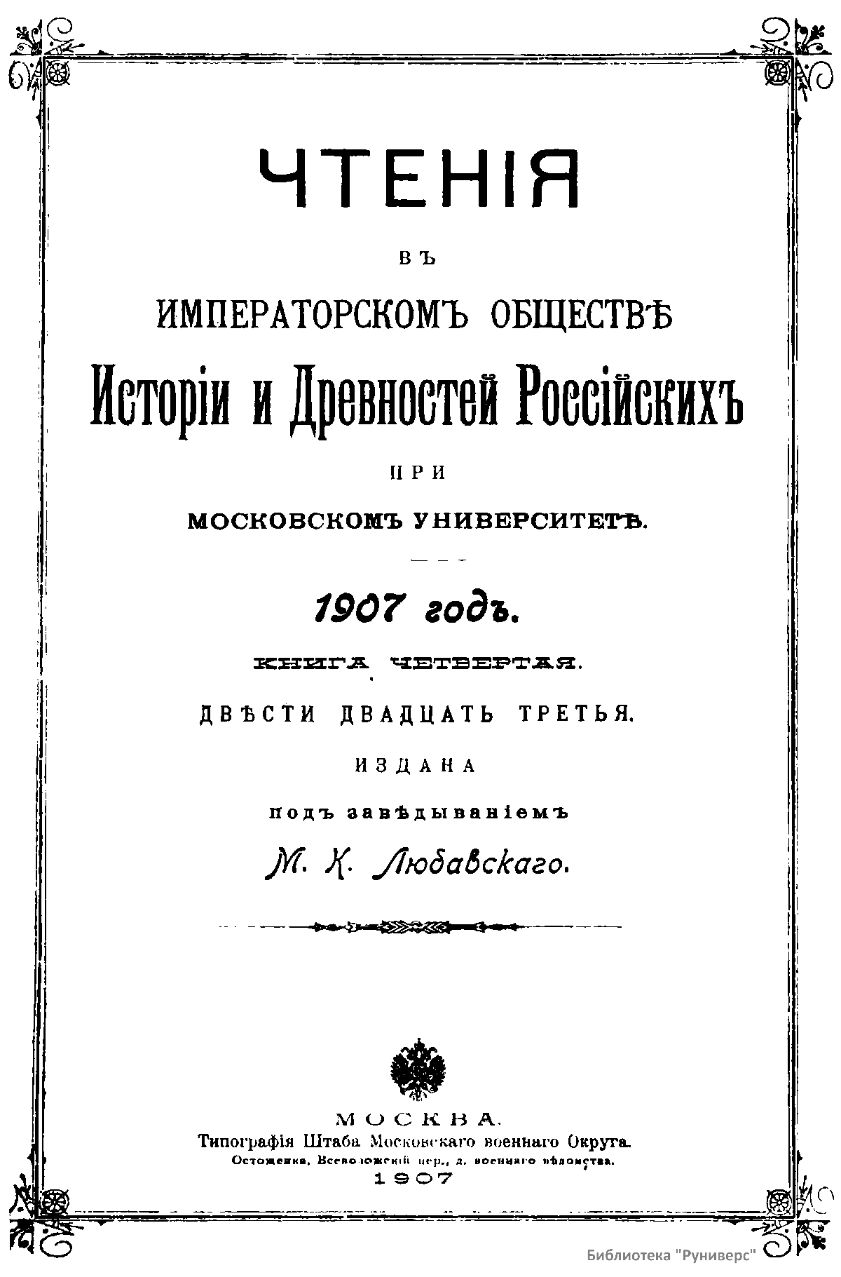 Чтенiя въ императорскомъ обществѣ Исторiи и Древностей Россiйских при Московском Университетѣ. 1907 годъ. Книга четвертая