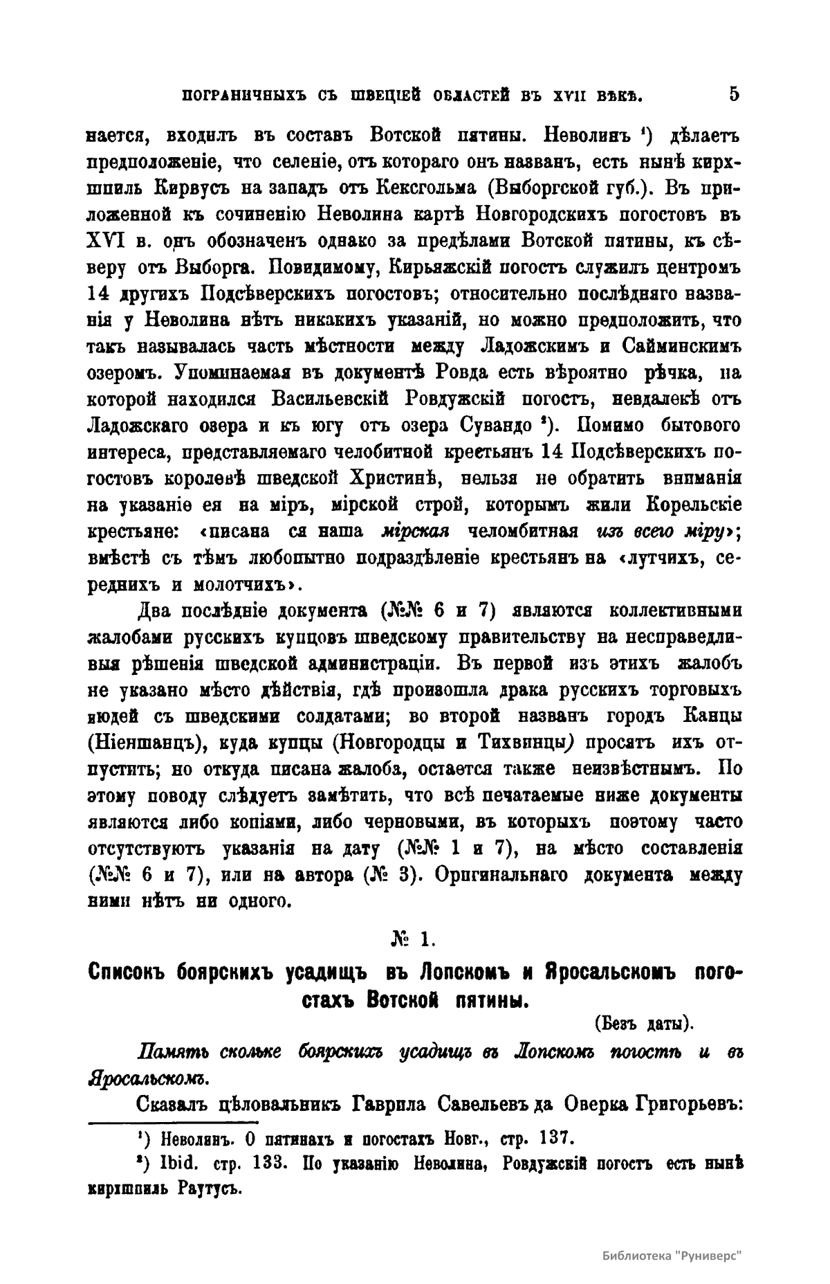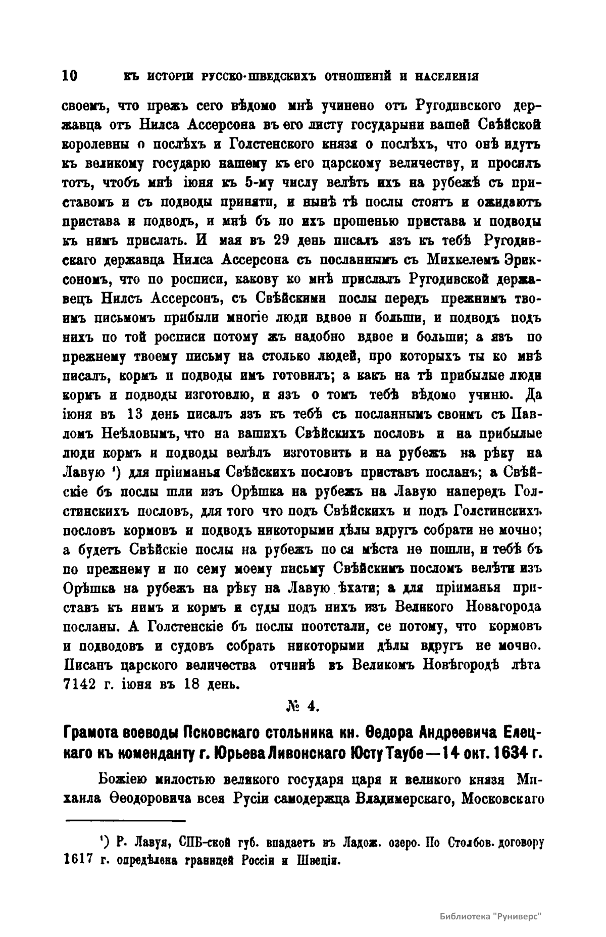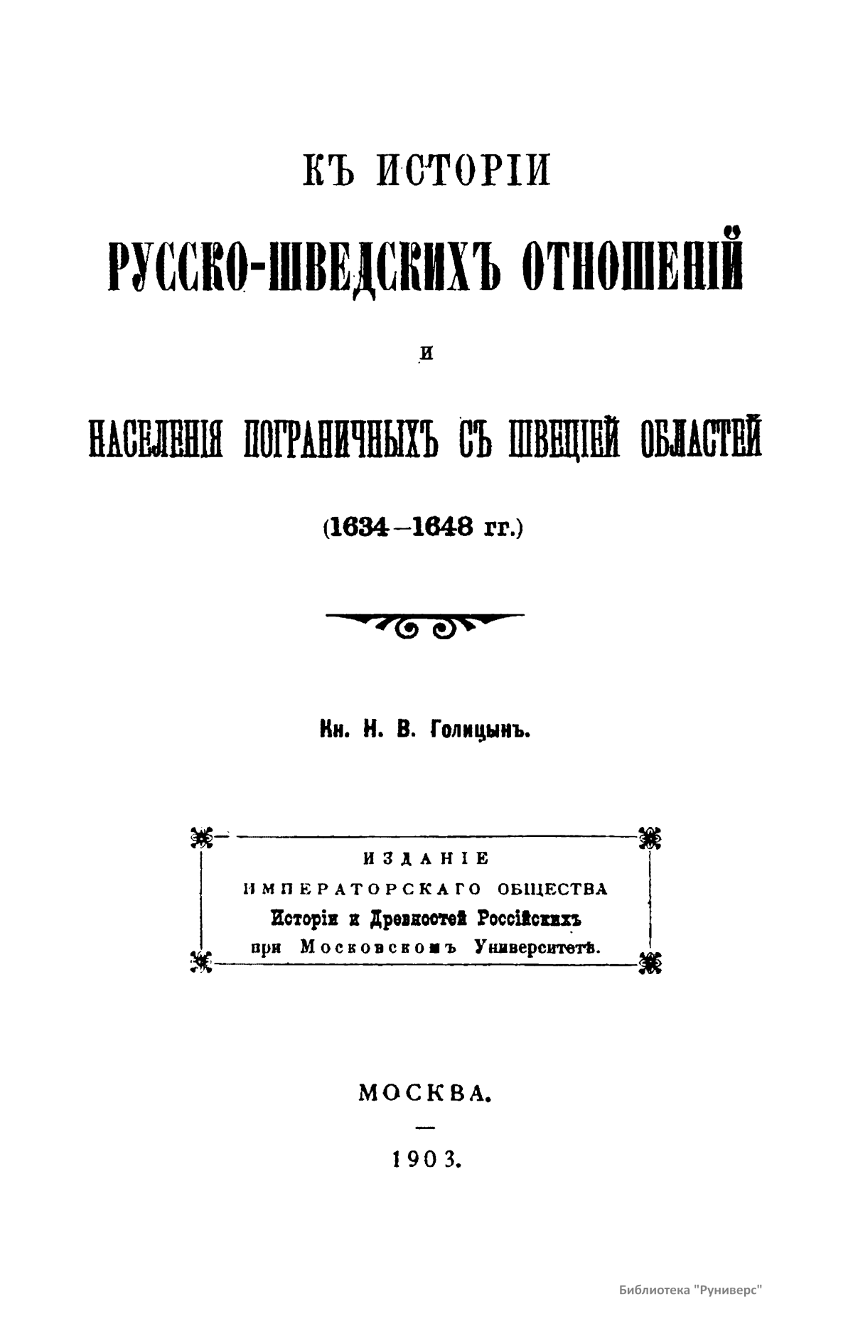 Къ исторiи русско-шведскихъ отношенiй и населенiя пограничныхъ съ Швецiей областей (1634-1648 гг.)