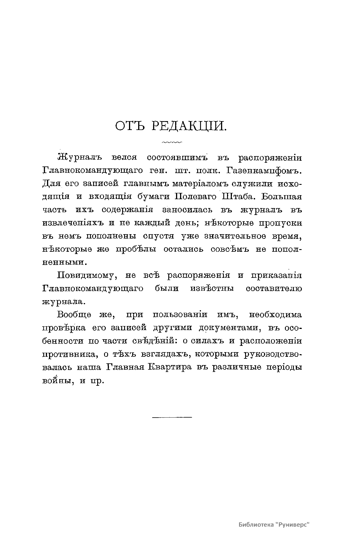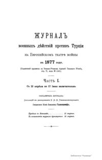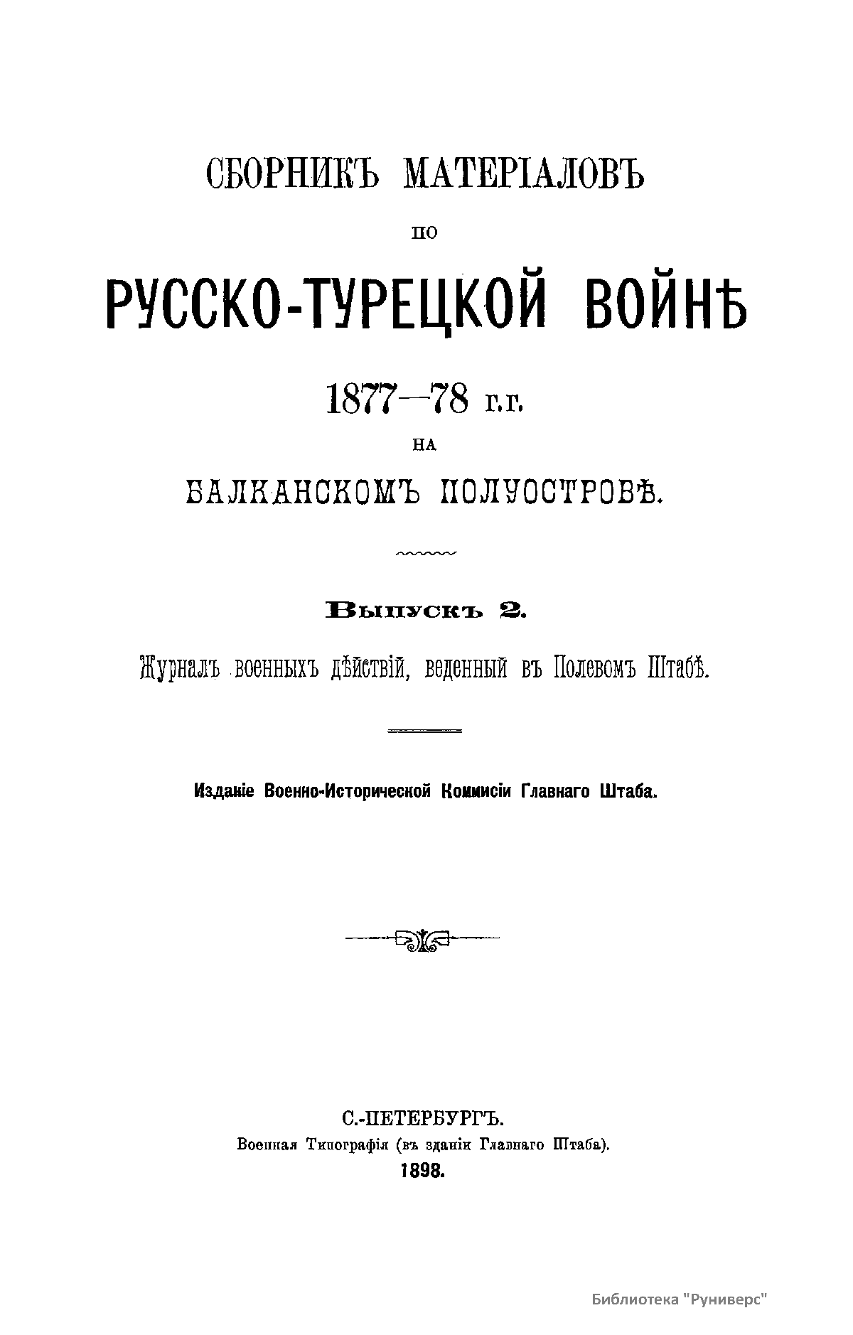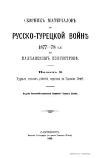 Сборникъ матерiаловъ по русско-турецкой войнѣ 1877-1878 г.г. на Балканскомъ полуостровѣ. Выпускъ 2. Журналъ военныхъ дѣйствiй, веденный въ Полевомъ Штабѣ