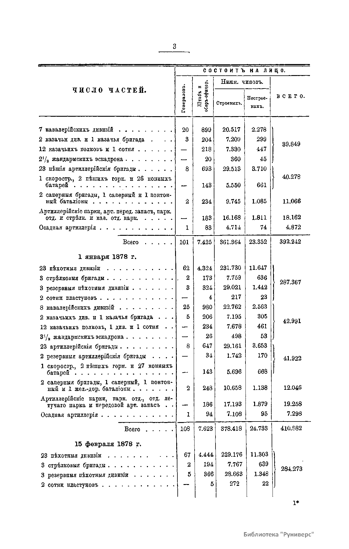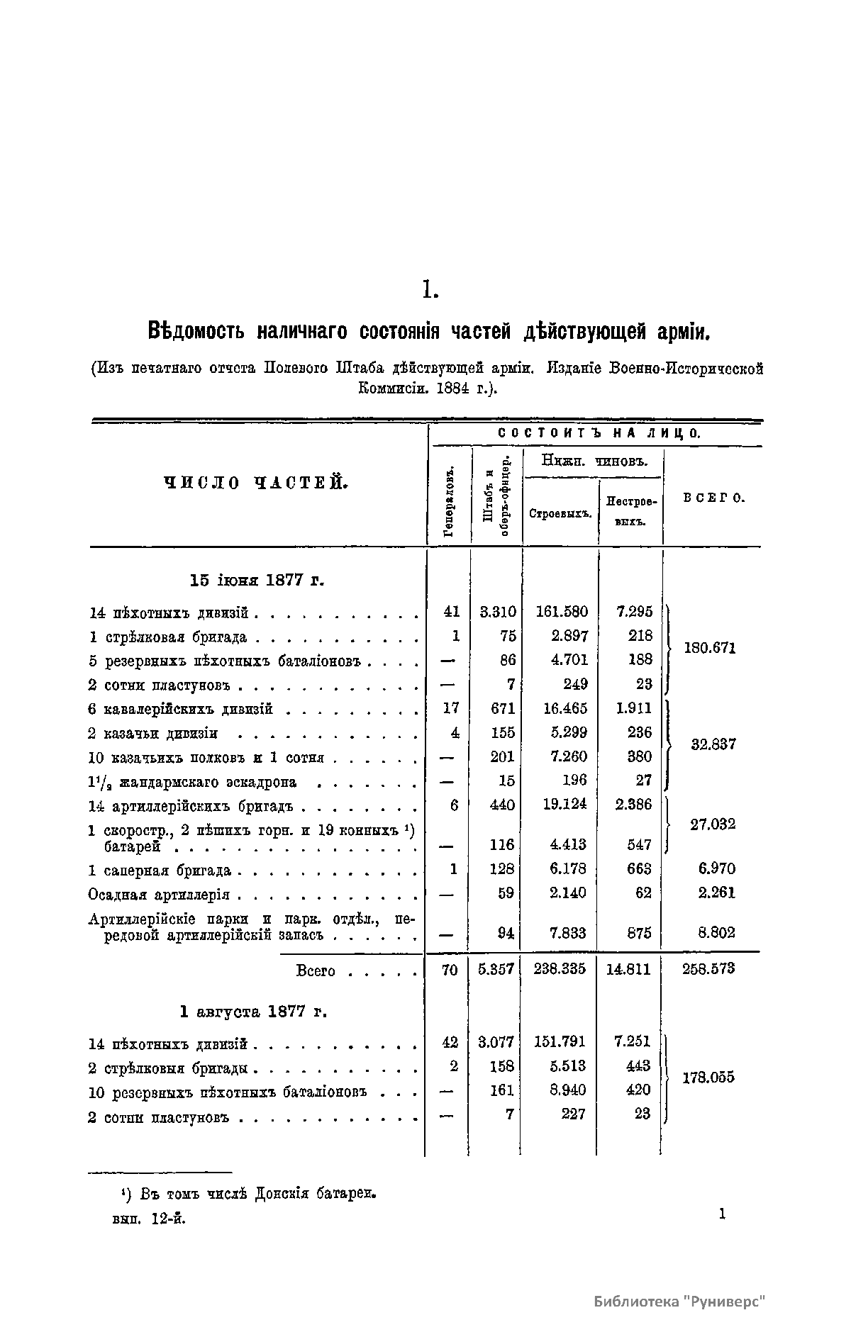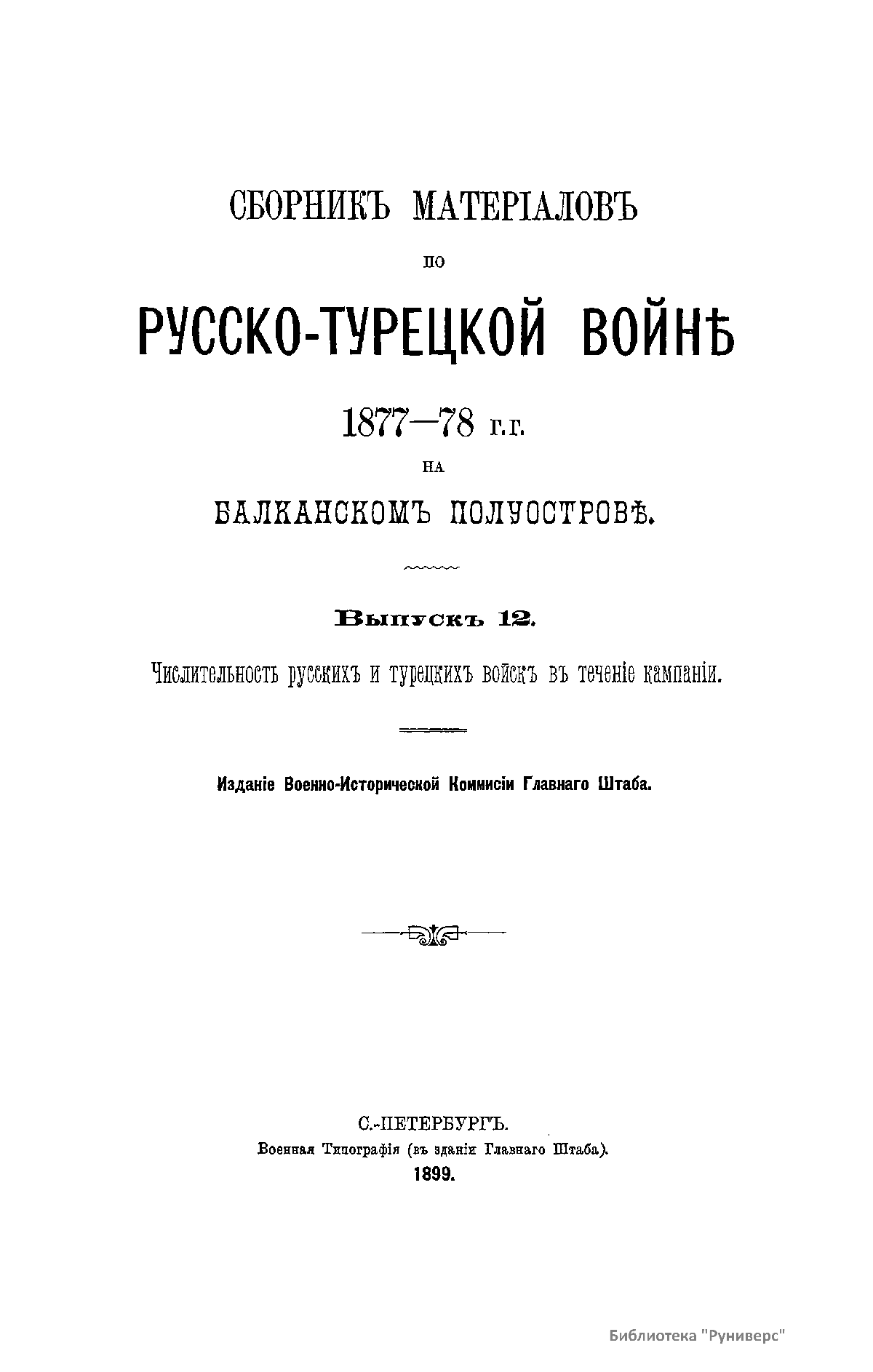 Сборникъ матерiаловъ по русско-турецкой войнѣ 1877-1878 г.г. на Балканскомъ полуостровѣ. Выпускъ 12. Численность русскихъ и турецкихъ войскъ въ теченiе кампанiи