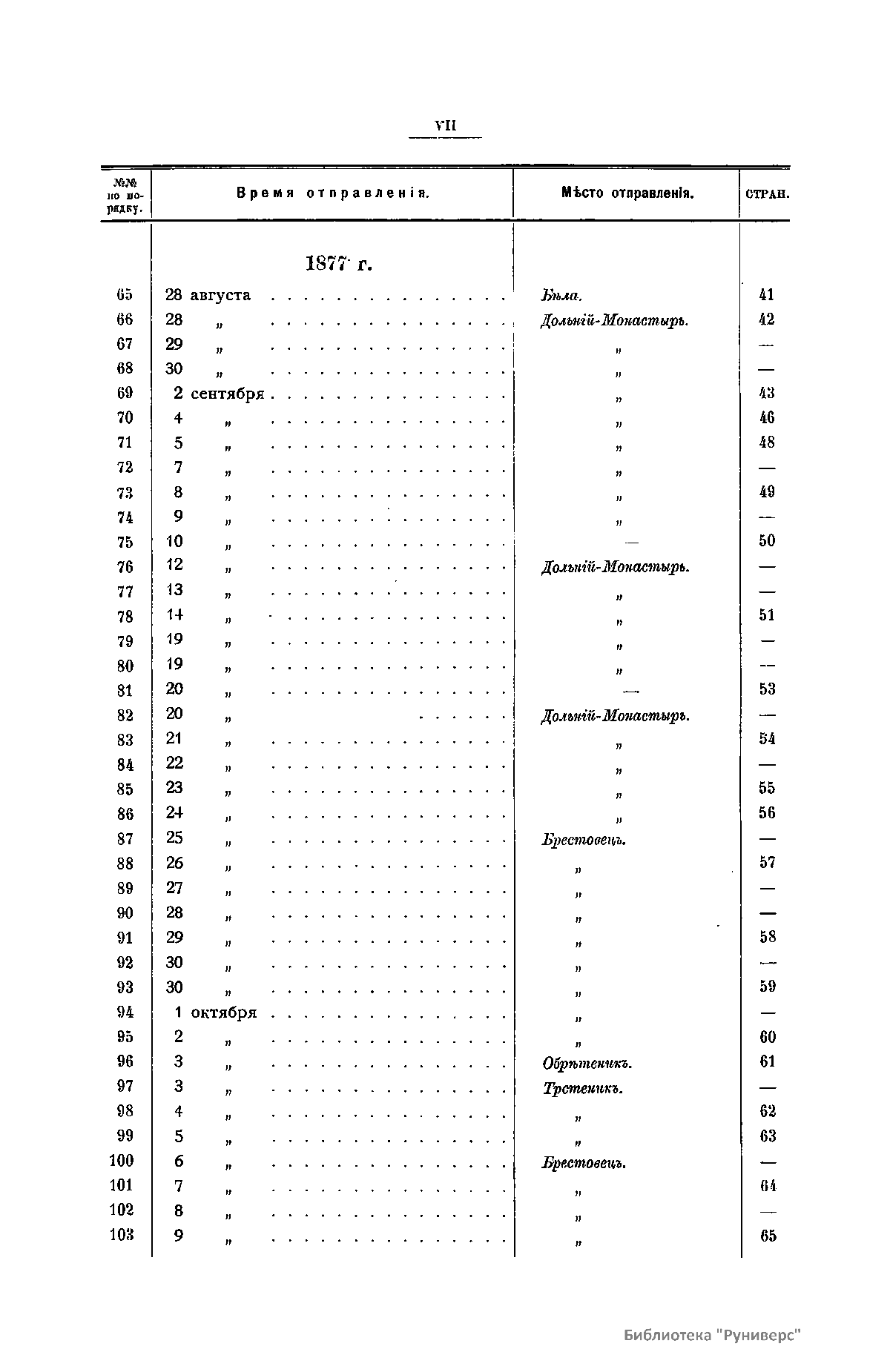 Военно-историческая комиссия Генерального штаба представляет сборник материалов по русско-турецкой войне 1877 – 1878 гг. на Балканском полуострове в 97 выпусках. Издание формирует полное представление о военных действиях и участниках этой войны. Русско-турецкая война 1877 – 1878 гг. была вызвана нежеланием Турции принять меры к улучшению положения подвластных ей христианских княжеств, обусловленному парижским трактатом 1856 г, и стремлением России укрепить свое влияние на Балканах. Способствовала освобождению народов Балканского полуострова от османского владычества. Россия объявила войну Турции 12 апреля 1877 г. Основные события: 1877 – сражение на Шипке, осада и взятие русскими войсками Плевны и Карса; 1878 – зимний переход русской армии через Балканский хребет, победы у Шипки – Шейново, Филиппополя, взятие Адрианополя. Завершилась Сан-Стефанским миром 1878 г., который обеспечил независимость балканским народам и территориальные приобретения России. Но Берлинский трактат ограничил независимость Болгарии и влияние России на Балканах.