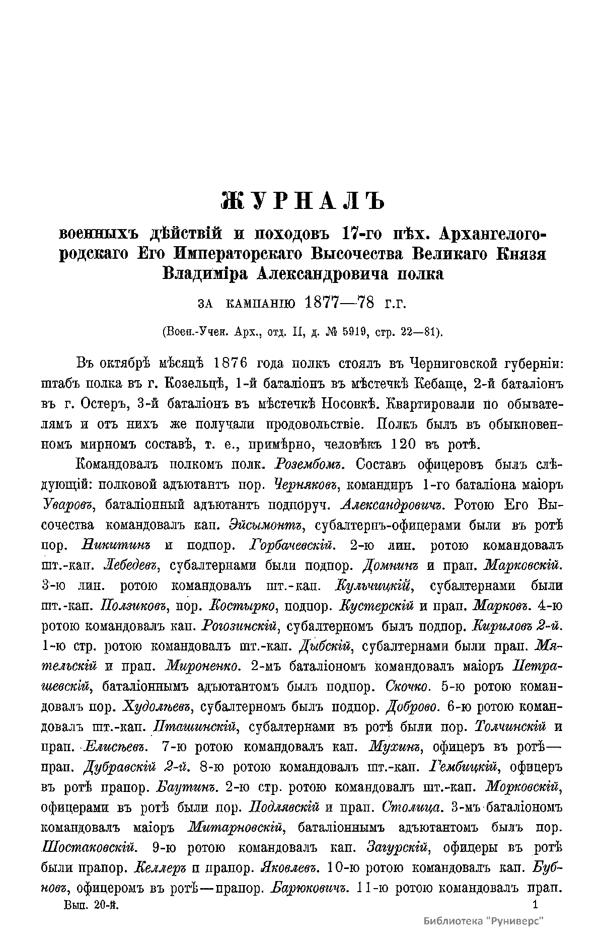 Выпуск 4. Журнал военных действий XIII армейского корпуса