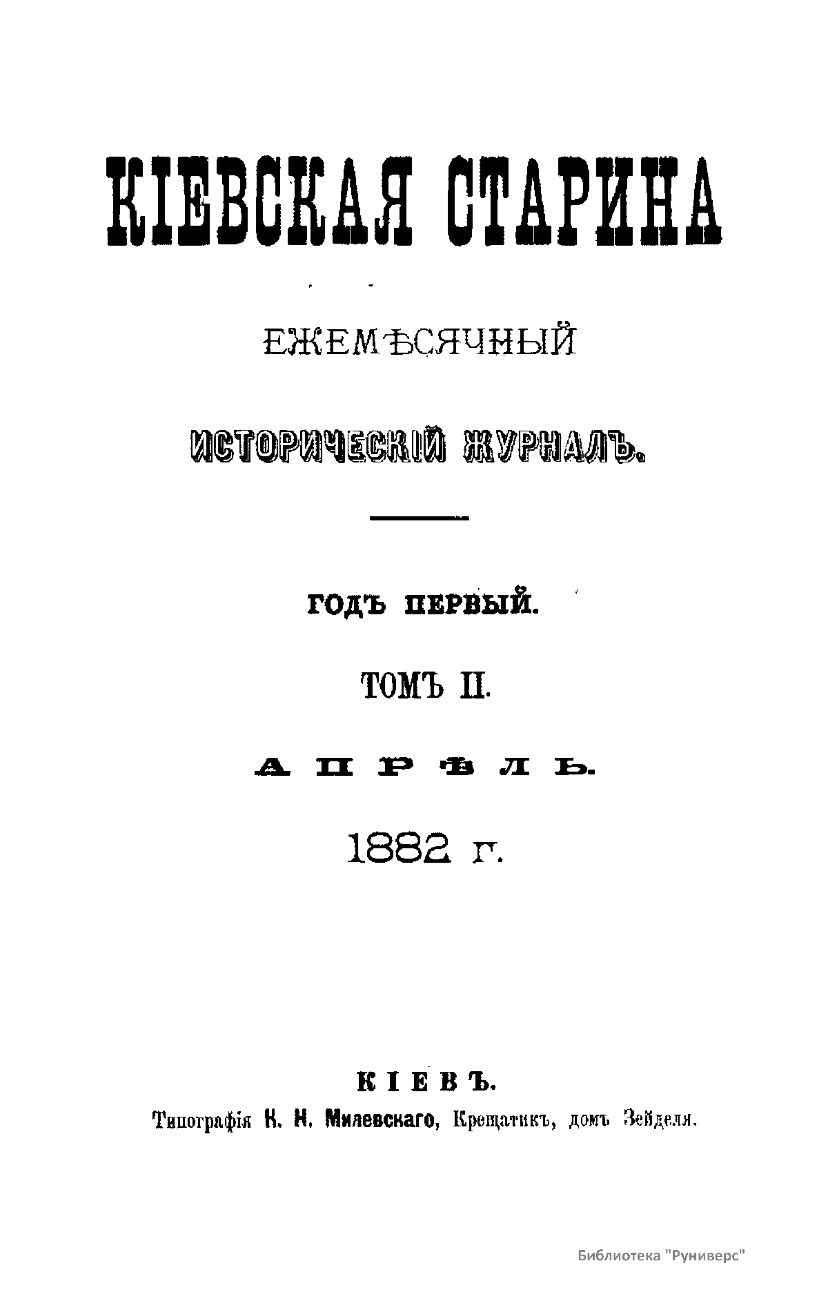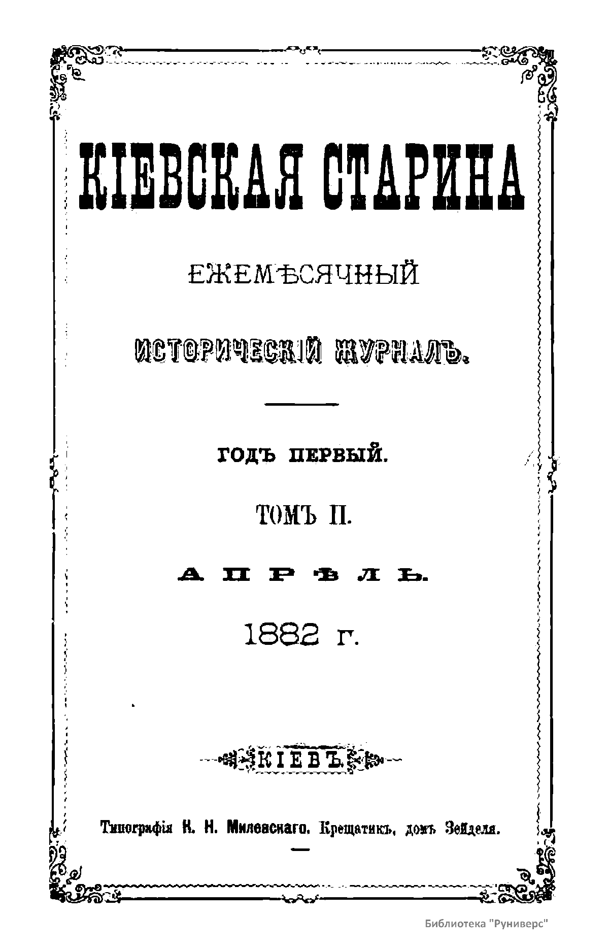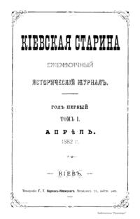 Киевская старина. Год первый. Том II. Апрель-Июнь 1882 г.