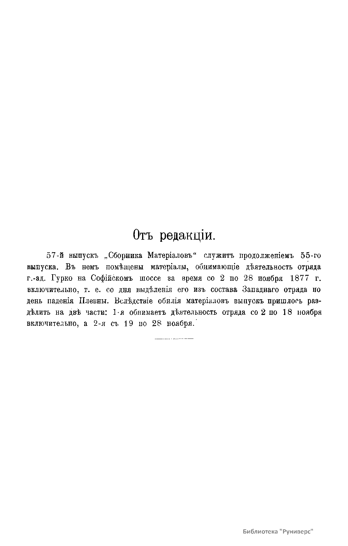 Сборник материалов по русско-турецкой войне 1877-1878 гг. на Балканском полуострове. Выпуск 57. Действия отряда г.-ад. Гурко со 2 по 28 ноября 1877 г. Часть I. Действия со 2 по 18 ноября включительно