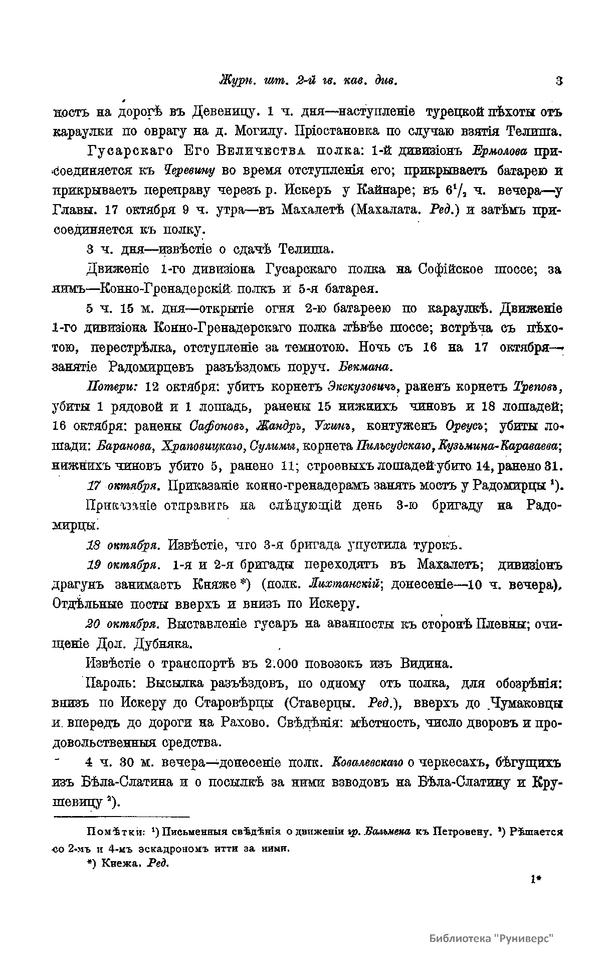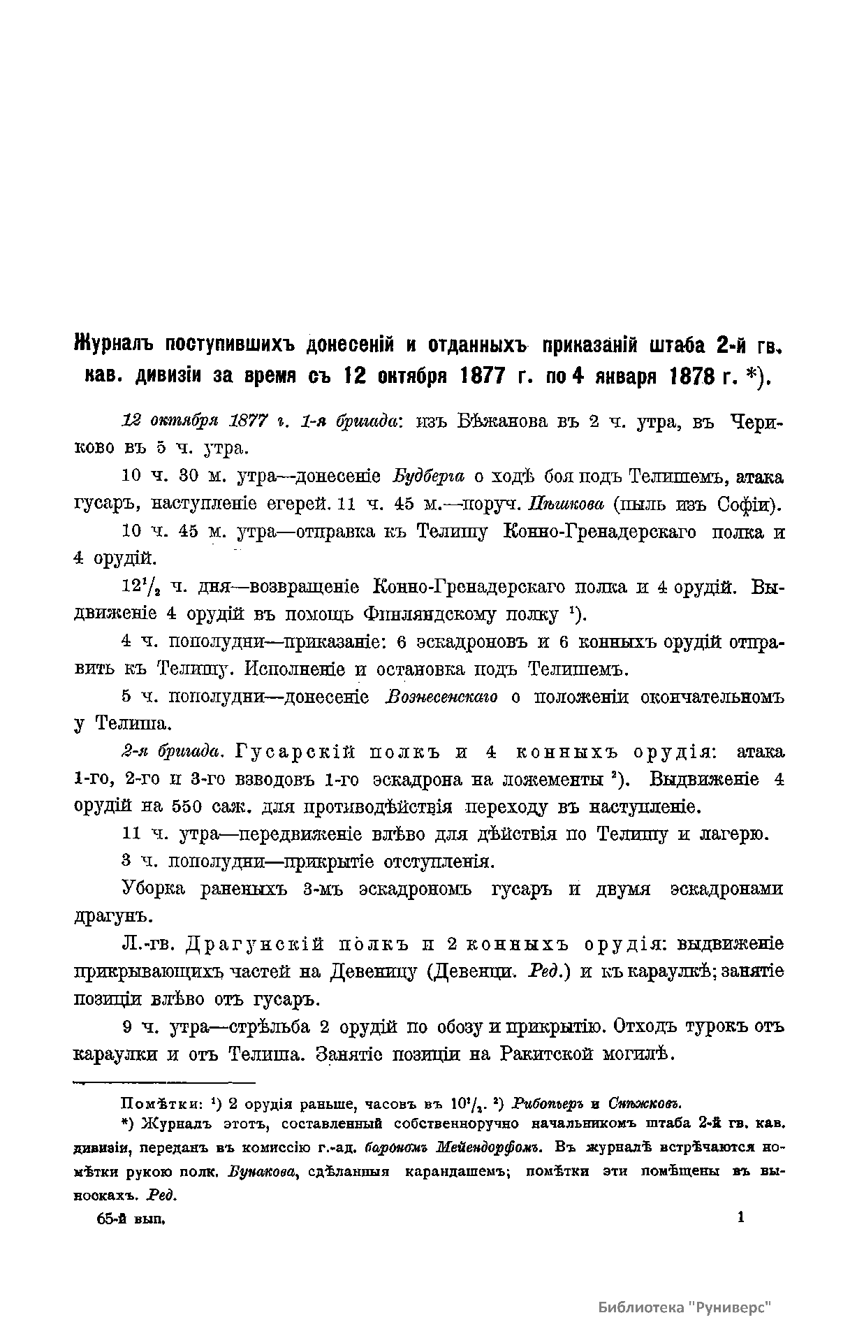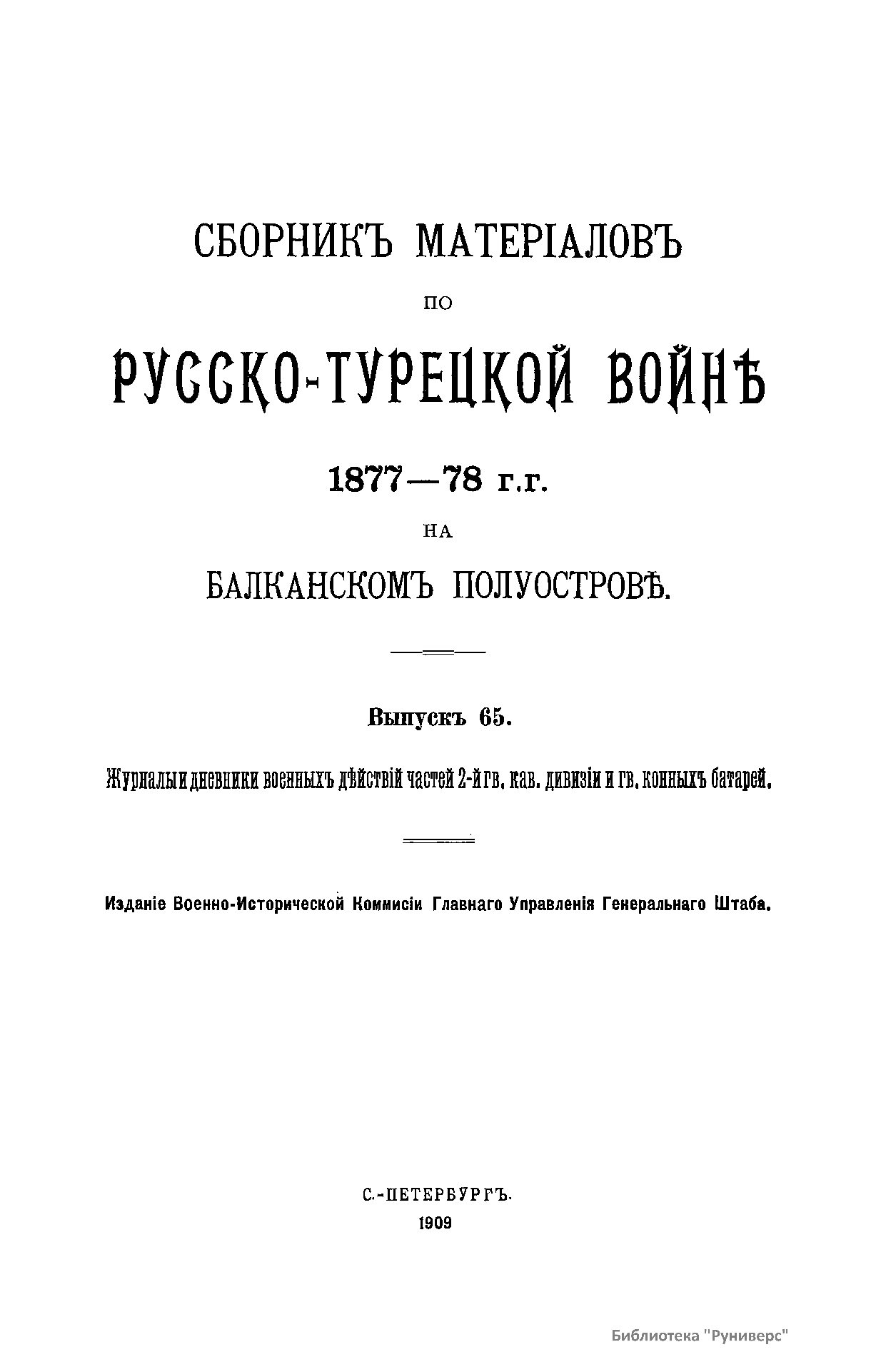 Сборникъ матерiаловъ по русско-турецкой войнѣ 1877-1878 г.г. на Балканскомъ полуостровѣ. Выпускъ 65. Журналы и дневники военныхъ дѣйствiй частей 2-й гв. кав. дивизiи и гв. конныхъ батарей