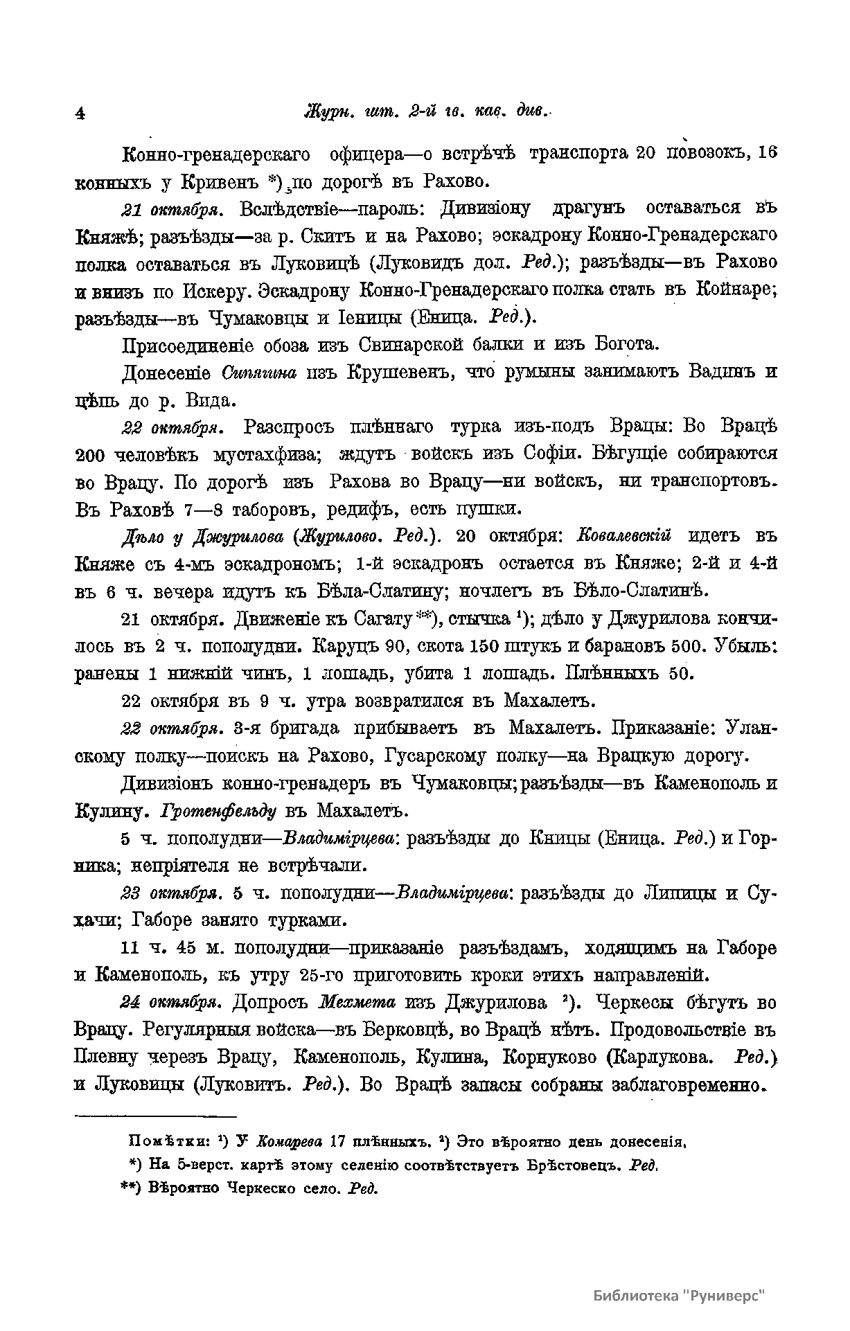 Сборник материалов по русско-турецкой войне 1877-1878 гг. на Балканском полуострове. Выпуск 65. Журналы и дневники военных действий частей 2-й гв. кав. дивизии и гв. конных батарей