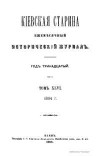 Киевская старина. Год тринадцатый. Том XLVI. Июль-Сентябрь 1894 г.