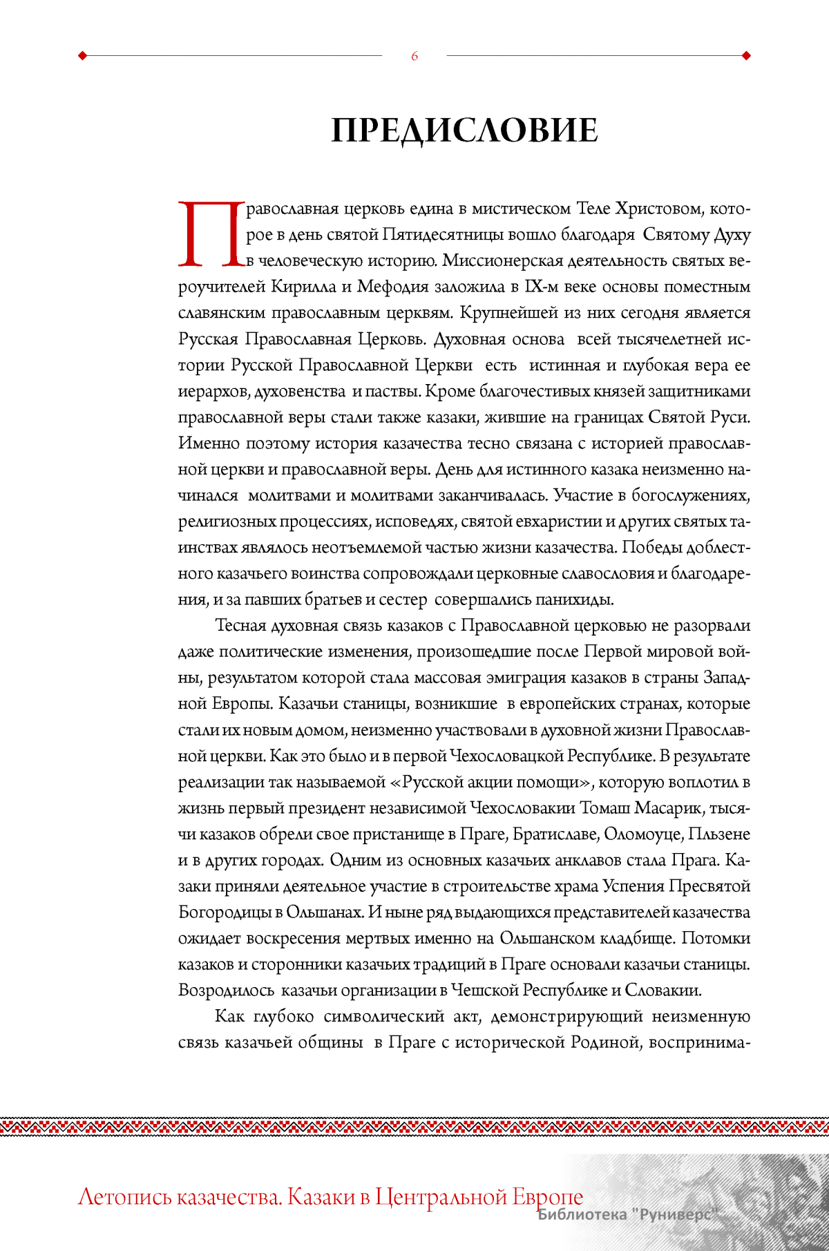 История казачества полна славных страниц побед и беззаветного служения Отечеству. В книге профессора И.И.Бондаренко и профессора И.Долейши на основе архивных документов и свидетельств очевидцев повествуется о пребывании казаков в Центральной Европе. Еще в середине XVIII века жители этой части Европы впервые познакомились с казаками, оказавшими неоценимую помощь монархам европейских стран в разрешении многочисленных споров и конфликтов того времени. Казаки в те далекие времена, как это подчеркивается в представленном исследовании, представляли собой нечто неведомое и даже пугающее, поскольку европейцы практически никогда ранее с ними не сталкивались и не имели ровно никакого представления о них. Однако храбрость, благородство и мужество лихих наездников снискали им уважение. В книге рассказывается и о трагическом и малоизученном периоде пребывания казаков в вынужденной эмиграции, вызванной перипетиями Октябрьской революции 1917 г. и последовавшей вслед за ней жестокой Гражданской войны в России. Буквально по отдельным фрагментам воссоздается общая картина жизни и быта казаков в непривычной для них обстановке. Немаловажное внимание уделено и периоду Второй мировой войны и не только массовым подвигам казаков, которые в составе Красной армии, спасли Европу от «чумы ХХ-го века» — фашизма, но и тем, кто шел на сотрудничество с врагом, совершая преступления против человечества. Ценность исследования состоит в том, что в нем прослеживается связь эпохи поколений, говорится и о дне сегодняшнем, возрождении традиций казачества как в нынешних Чехии и Словакии, так и на исторической Родине казаков в России.