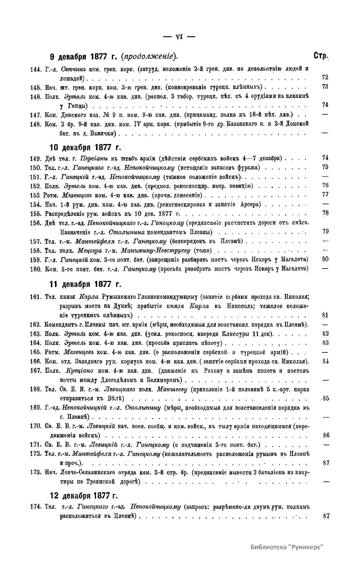 Военно-историческая комиссия Генерального штаба представляет сборник материалов по русско-турецкой войне 1877 – 1878 гг. на Балканском полуострове в 97 выпусках. Издание формирует полное представление о военных действиях и участниках этой войны. Русско-турецкая война 1877 – 1878 гг. была вызвана нежеланием Турции принять меры к улучшению положения подвластных ей христианских княжеств, обусловленному парижским трактатом 1856 г, и стремлением России укрепить свое влияние на Балканах. Способствовала освобождению народов Балканского полуострова от османского владычества. Россия объявила войну Турции 12 апреля 1877 г. Основные события: 1877 – сражение на Шипке, осада и взятие русскими войсками Плевны и Карса; 1878 – зимний переход русской армии через Балканский хребет, победы у Шипки – Шейново, Филиппополя, взятие Адрианополя. Завершилась Сан-Стефанским миром 1878 г., который обеспечил независимость балканским народам и территориальные приобретения России. Но Берлинский трактат ограничил независимость Болгарии и влияние России на Балканах.