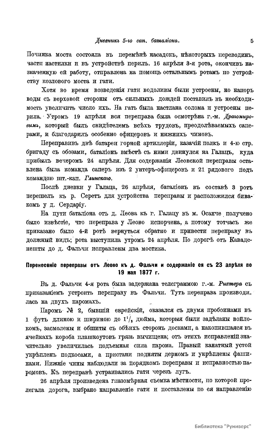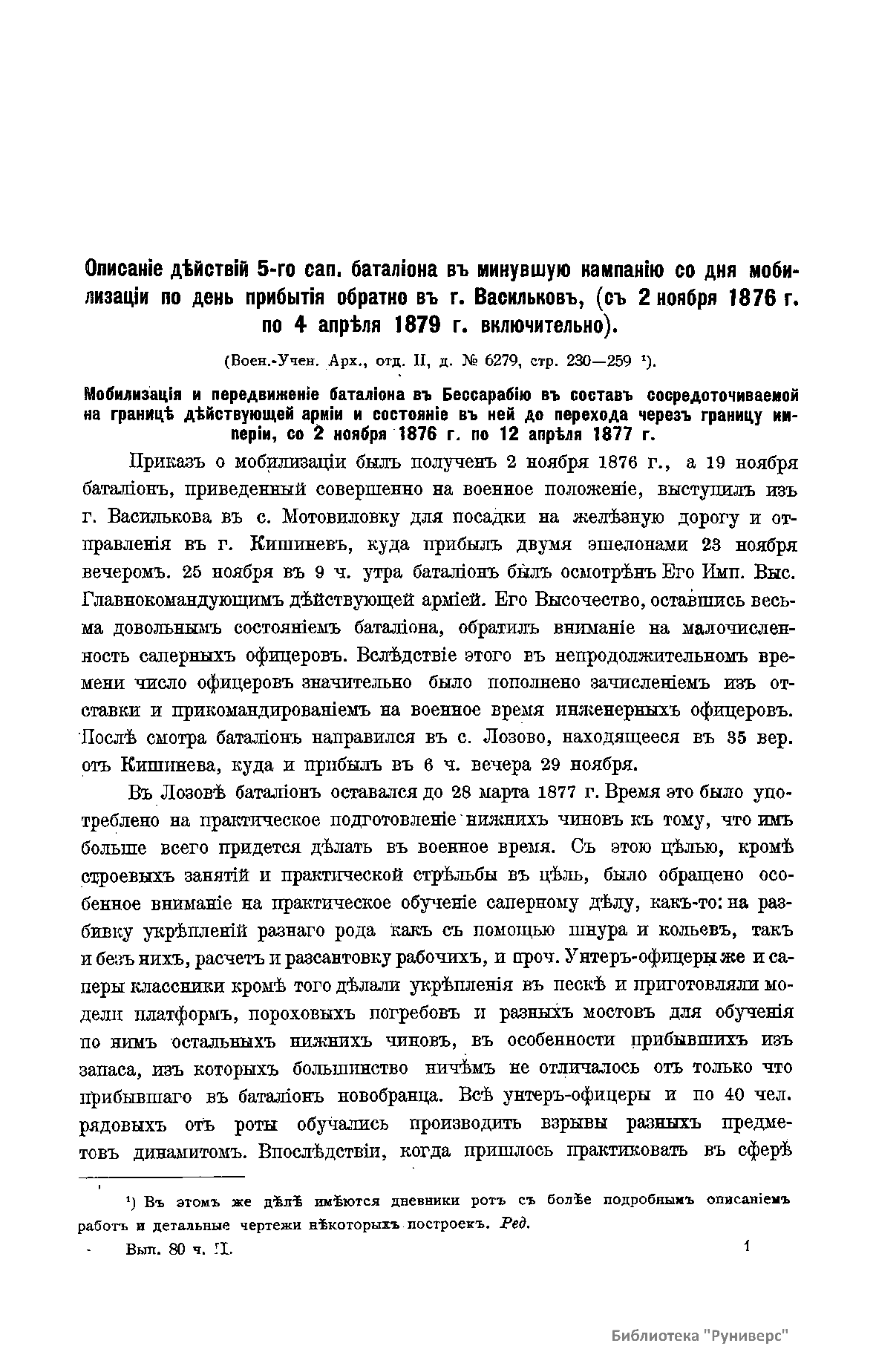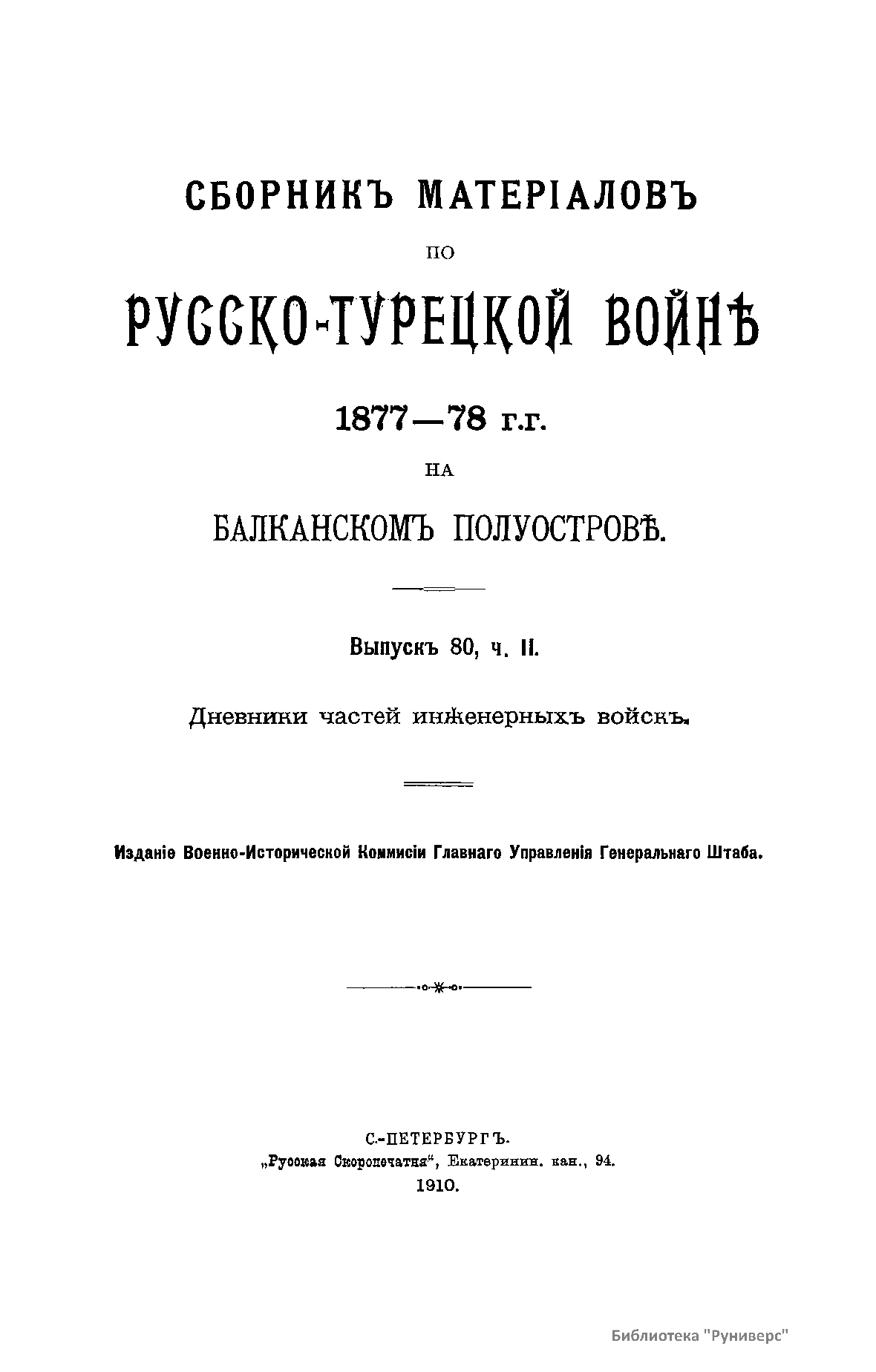 Сборникъ матерiаловъ по русско-турецкой войнѣ 1877-1878 г.г. на Балканскомъ полуостровѣ. Выпускъ 80, ч. II. Дневники частей инженерныхъ войскъ