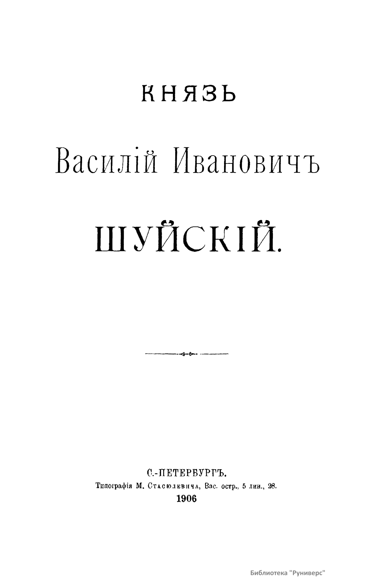 Князь Василiй Ивановичъ Шуйскiй