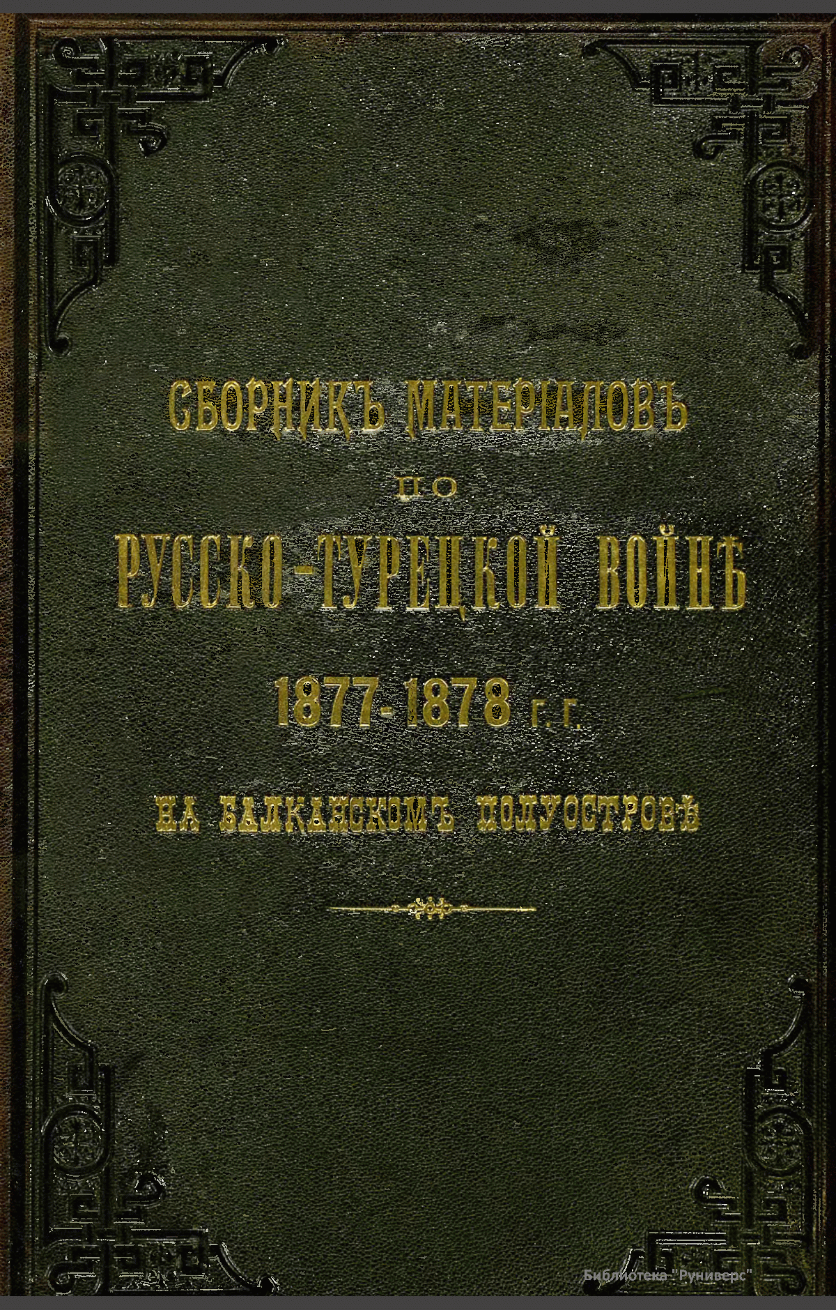 Военно-историческая комиссия Генерального штаба представляет сборник материалов по русско-турецкой войне 1877 – 1878 гг. на Балканском полуострове в 97 выпусках. Издание формирует полное представление о военных действиях и участниках этой войны. Русско-турецкая война 1877 – 1878 гг. была вызвана нежеланием Турции принять меры к улучшению положения подвластных ей христианских княжеств, обусловленному парижским трактатом 1856 г, и стремлением России укрепить свое влияние на Балканах. Способствовала освобождению народов Балканского полуострова от османского владычества. Россия объявила войну Турции 12 апреля 1877 г. Основные события: 1877 – сражение на Шипке, осада и взятие русскими войсками Плевны и Карса; 1878 – зимний переход русской армии через Балканский хребет, победы у Шипки – Шейново, Филиппополя, взятие Адрианополя. Завершилась Сан-Стефанским миром 1878 г., который обеспечил независимость балканским народам и территориальные приобретения России. Но Берлинский трактат ограничил независимость Болгарии и влияние России на Балканах.