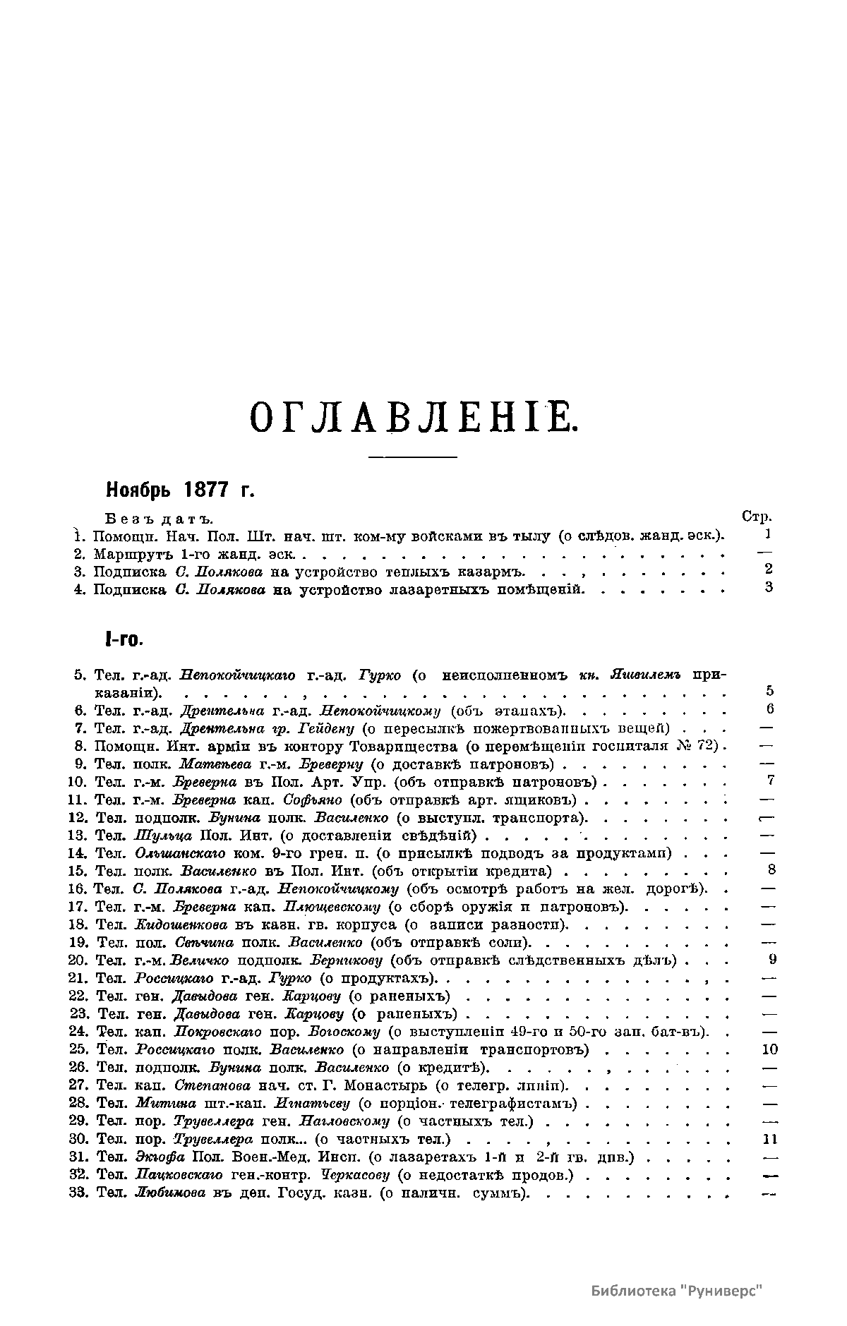 Сборникъ матерiаловъ по русско-турецкой войнѣ 1877-1878 г.г. на Балканскомъ полуостровѣ. Выпускъ 85. Документы, относящiеся до дѣятельности тыловыхъ учрежденiй армiи съ 1 ноября по 10 декабря 1877 г. включительно