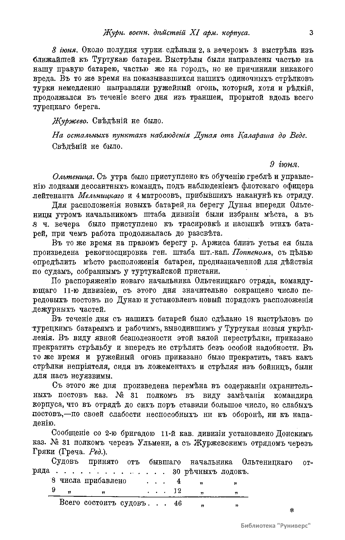Сборникъ матерiаловъ по русско-турецкой войнѣ 1877-1878 г.г. на Балканскомъ полуостровѣ. Выпускъ 91. Часть I. Дневники и журналы военныхъ дѣйствiй XI арм. корпуса 11-й пѣх. дивизiи и ея частей