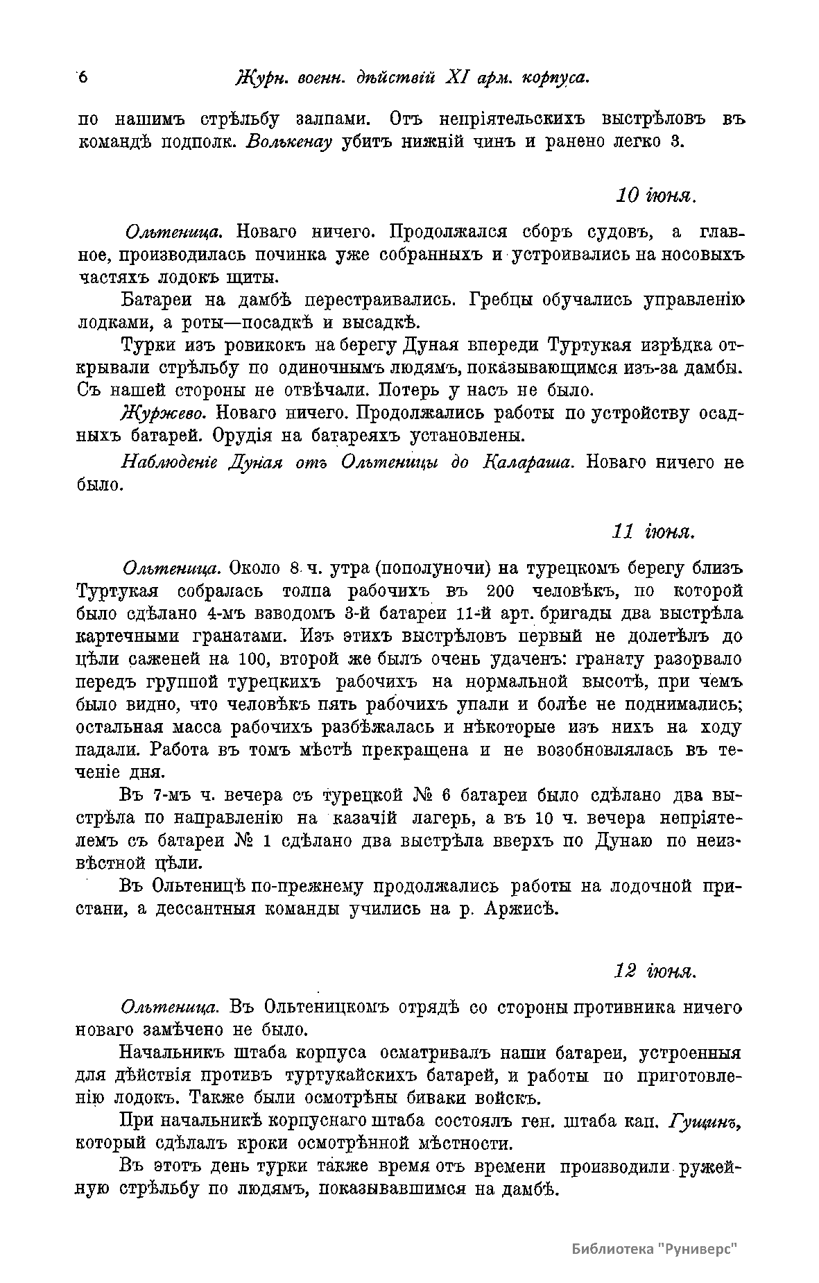 Выпуск 4. Журнал военных действий XIII армейского корпуса
