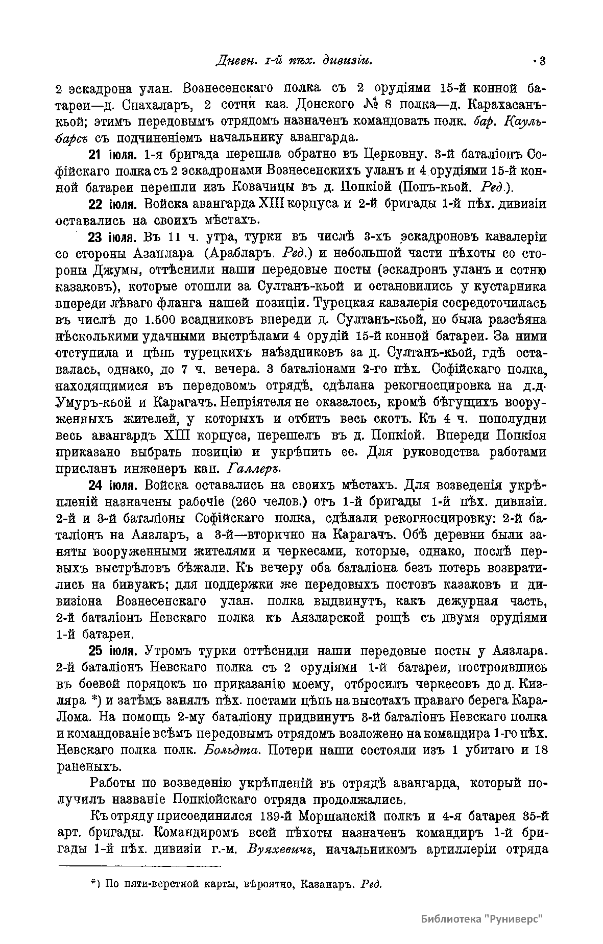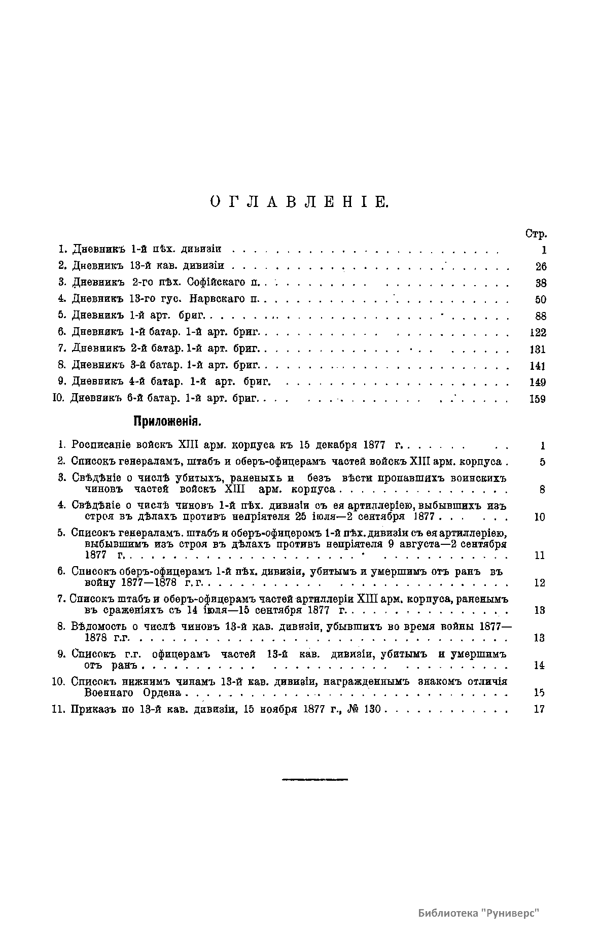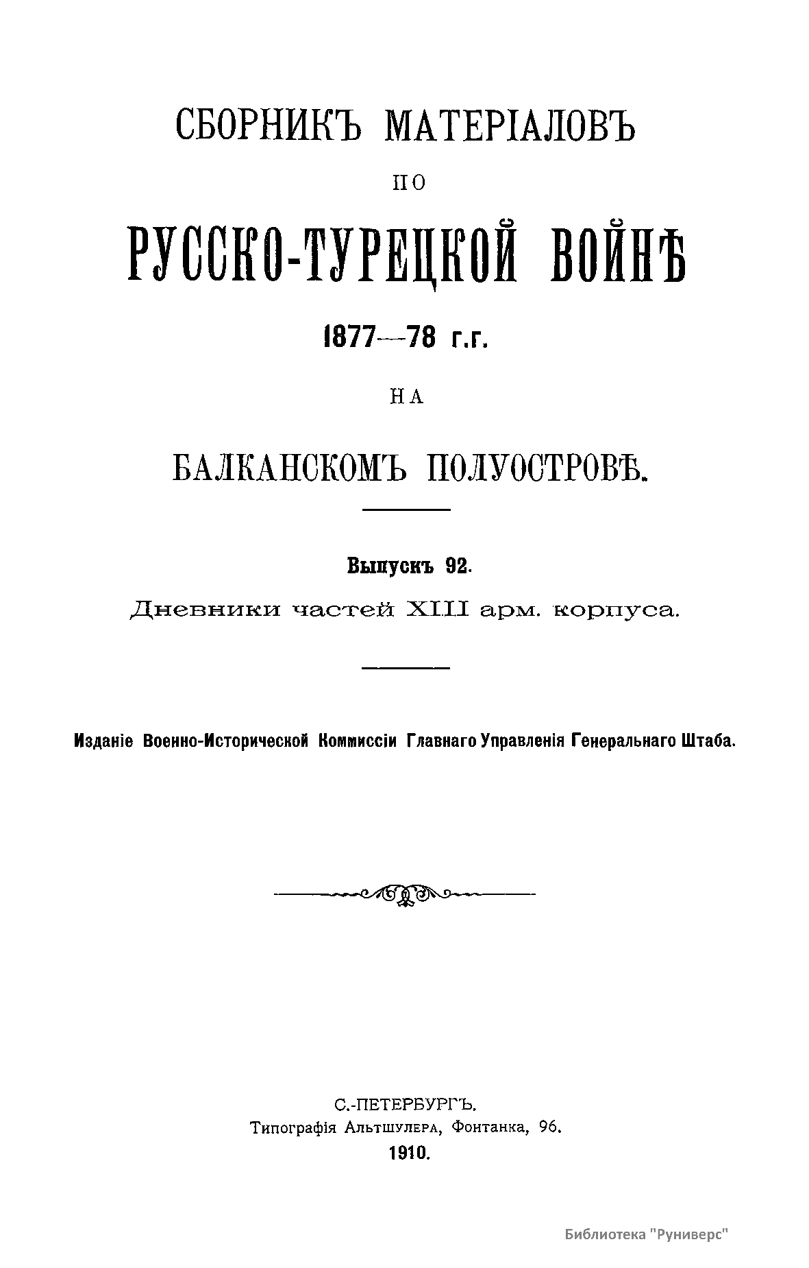 Сборникъ матерiаловъ по русско-турецкой войнѣ 1877-1878 г.г. на Балканскомъ полуостровѣ. Выпускъ 92. Дневники частей XIII арм. корпуса