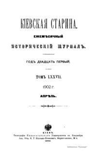 Киевская старина. Год двадцать первый. Том LXXVII. Апрель-Июнь 1902 г.