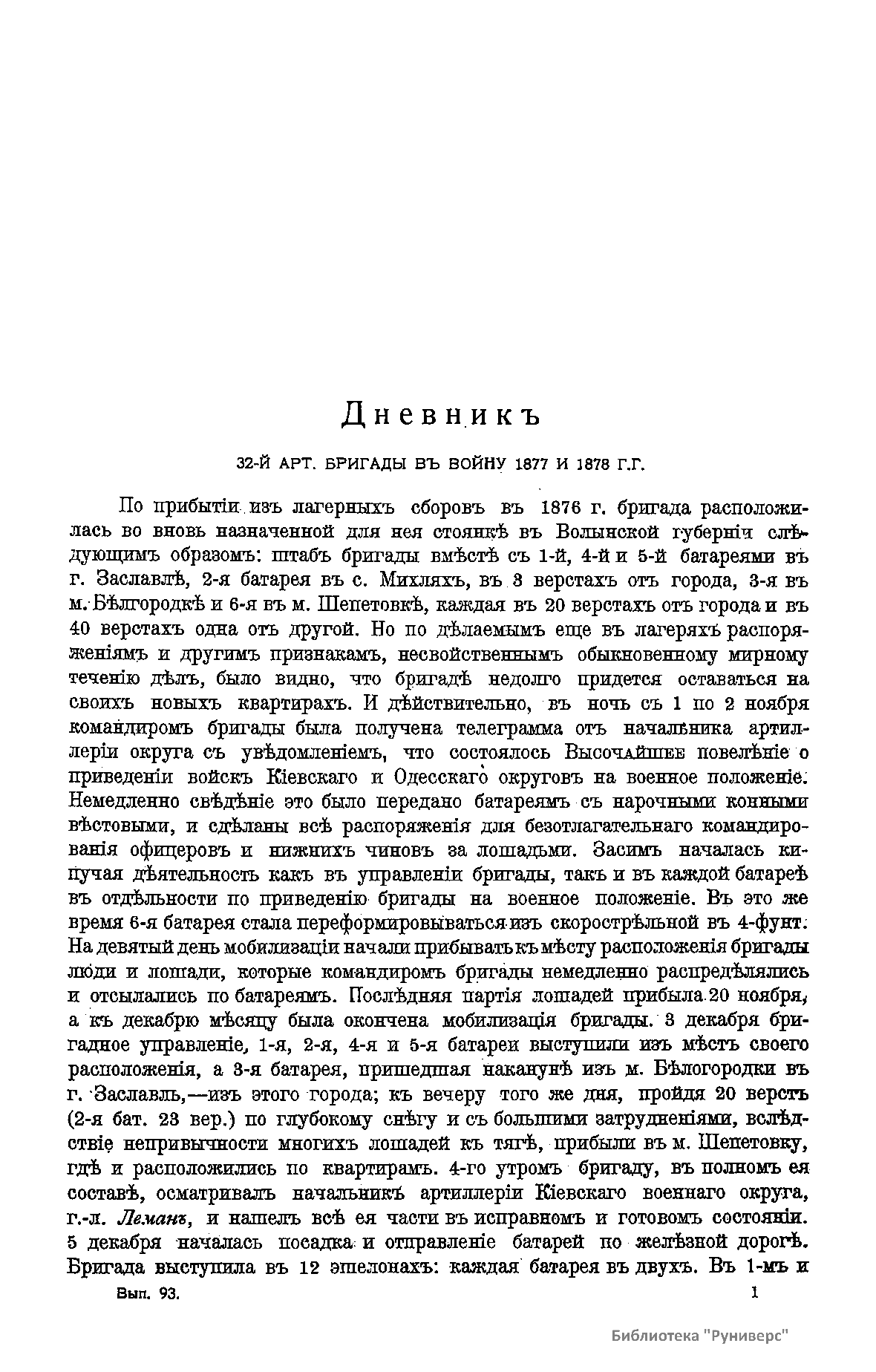 Сборникъ матерiаловъ по русско-турецкой войнѣ 1877-1878 г.г. на Балканскомъ полуостровѣ. Выпускъ 93. Дополнительный выпускъ дневниковъ и журналовъ военныхъ дѣйствiй