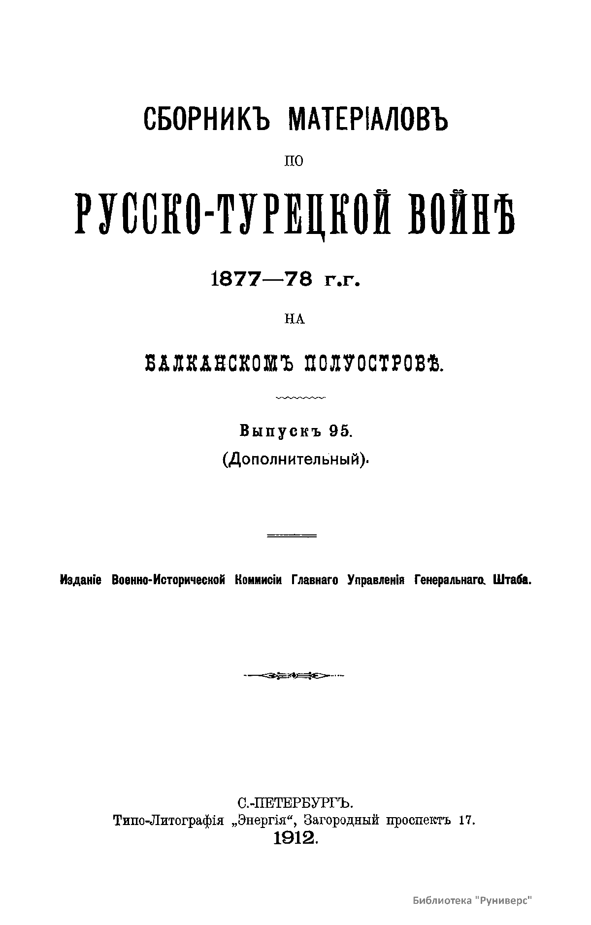 Сборникъ матерiаловъ по русско-турецкой войнѣ 1877-1878 г.г. на Балканскомъ полуостровѣ. Выпускъ 95. (Дополнительный).