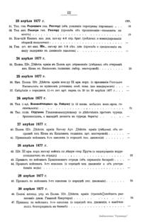 Военно-историческая комиссия Генерального штаба представляет сборник материалов по русско-турецкой войне 1877 – 1878 гг. на Балканском полуострове в 97 выпусках. Издание формирует полное представление о военных действиях и участниках этой войны. Русско-турецкая война 1877 – 1878 гг. была вызвана нежеланием Турции принять меры к улучшению положения подвластных ей христианских княжеств, обусловленному парижским трактатом 1856 г, и стремлением России укрепить свое влияние на Балканах. Способствовала освобождению народов Балканского полуострова от османского владычества. Россия объявила войну Турции 12 апреля 1877 г. Основные события: 1877 – сражение на Шипке, осада и взятие русскими войсками Плевны и Карса; 1878 – зимний переход русской армии через Балканский хребет, победы у Шипки – Шейново, Филиппополя, взятие Адрианополя. Завершилась Сан-Стефанским миром 1878 г., который обеспечил независимость балканским народам и территориальные приобретения России. Но Берлинский трактат ограничил независимость Болгарии и влияние России на Балканах.