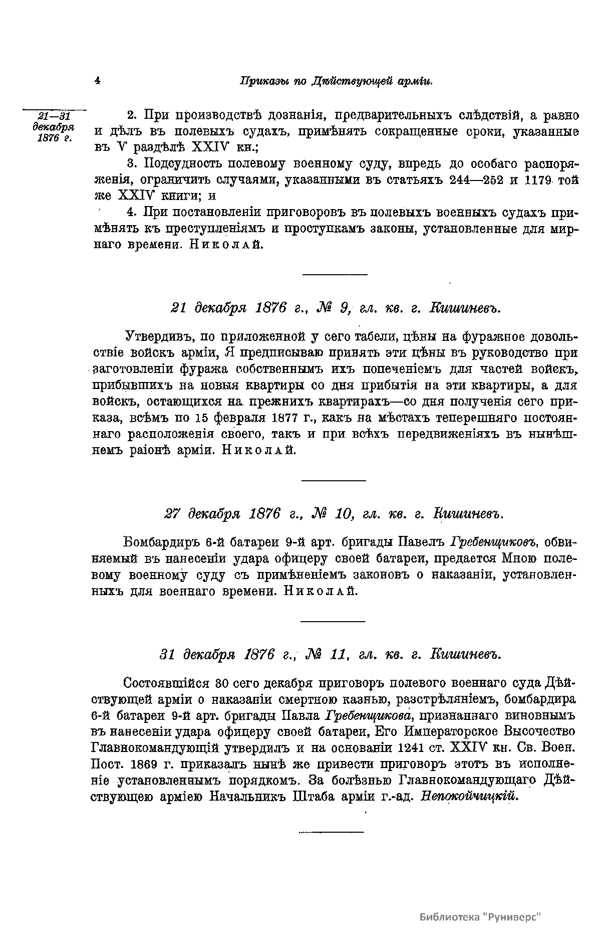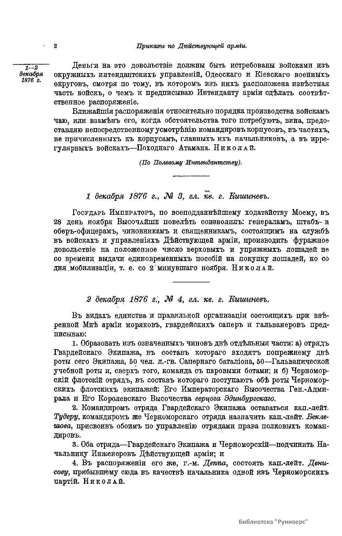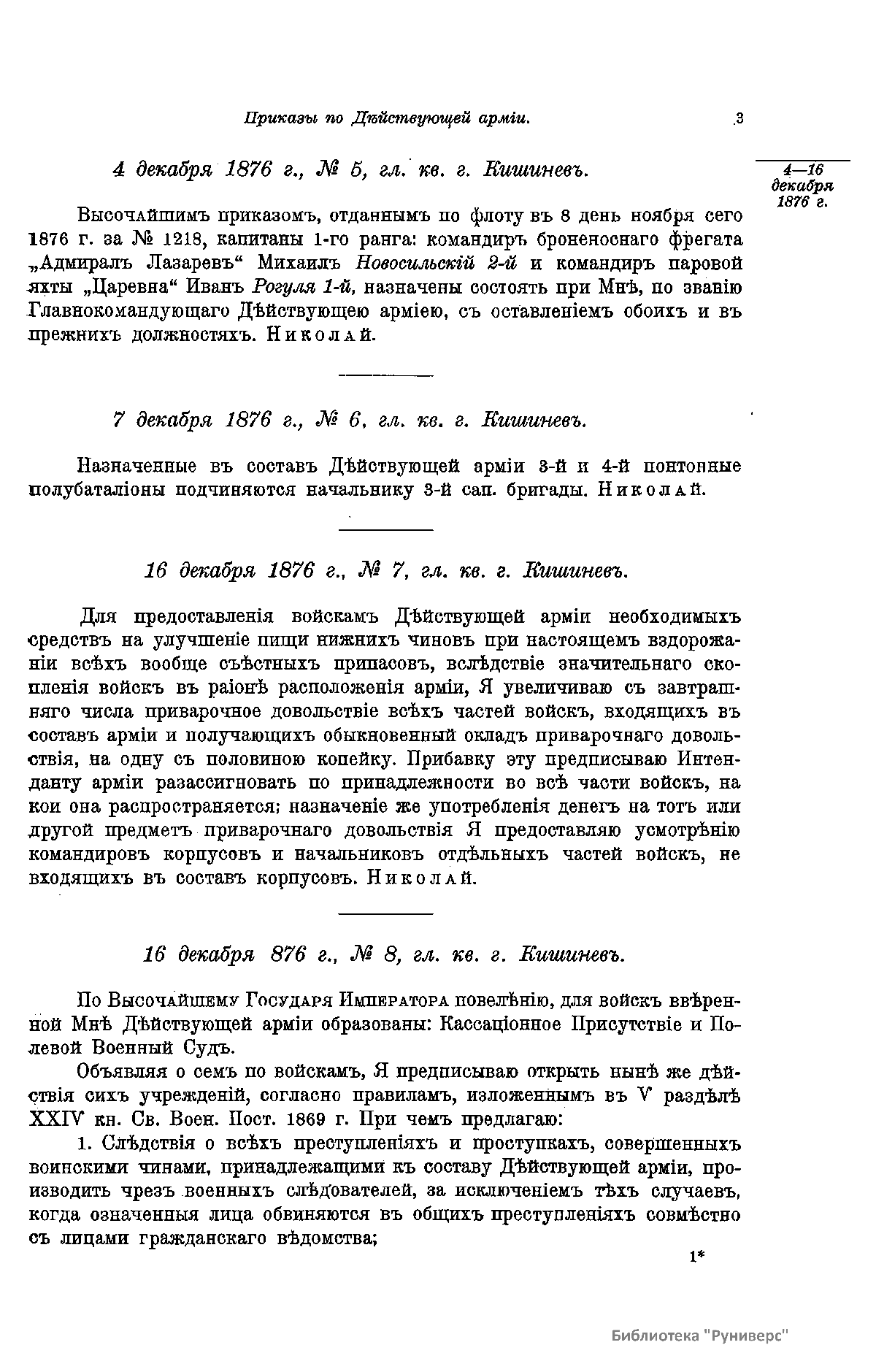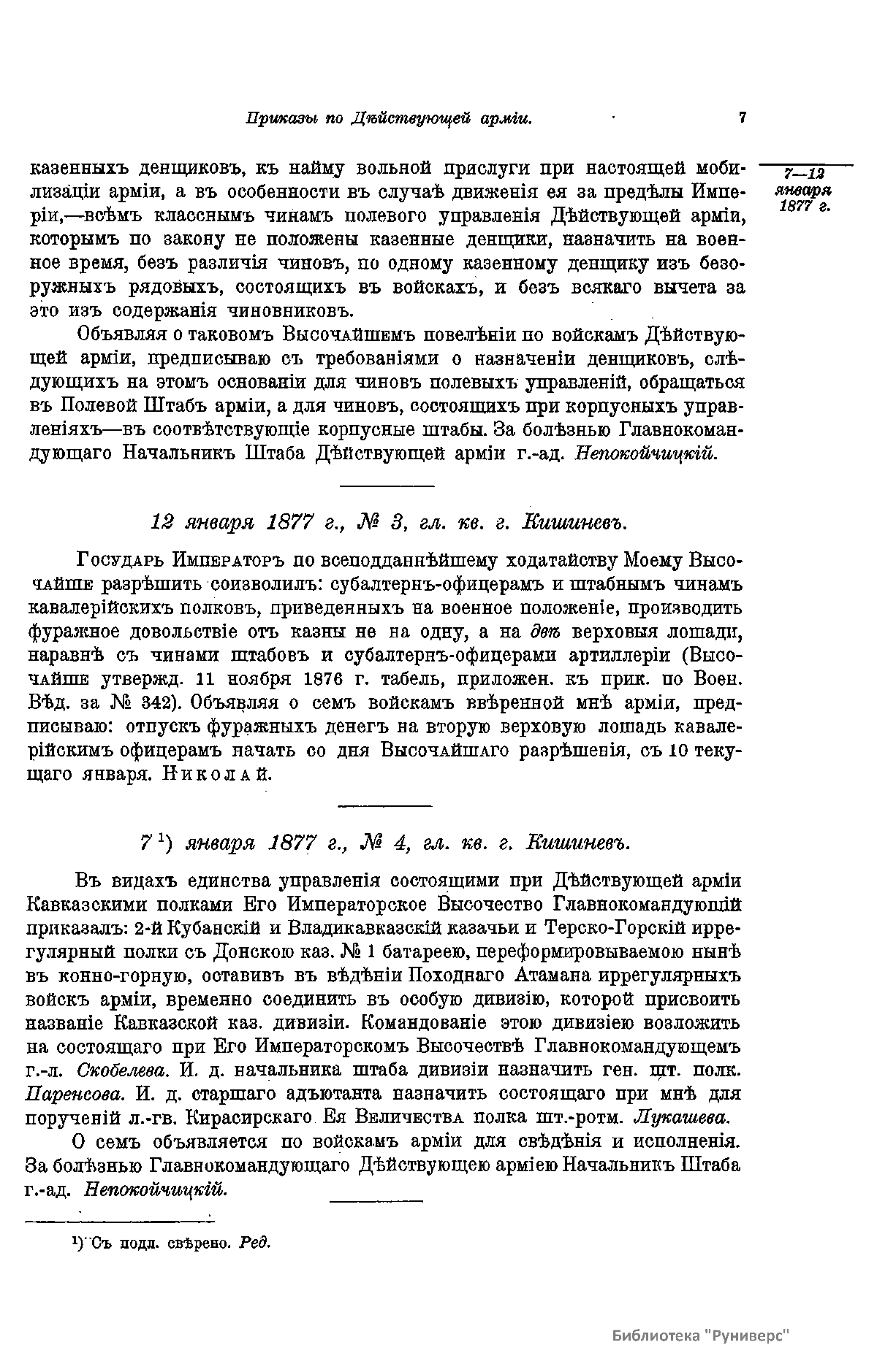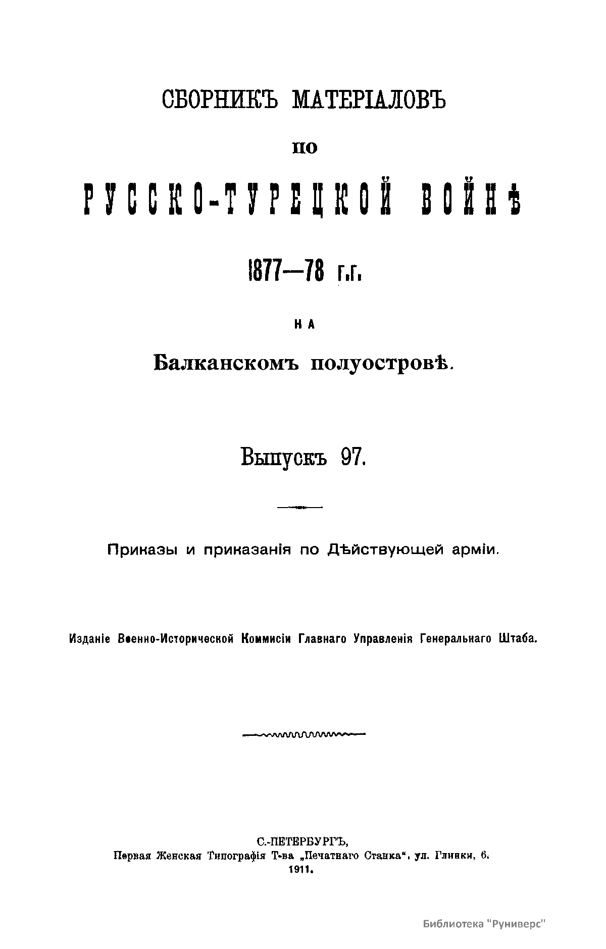 Сборникъ матерiаловъ по русско-турецкой войнѣ 1877-1878 г.г. на Балканскомъ полуостровѣ. Выпускъ 97. Приказы и приказанiя по Дѣйствующей армiи