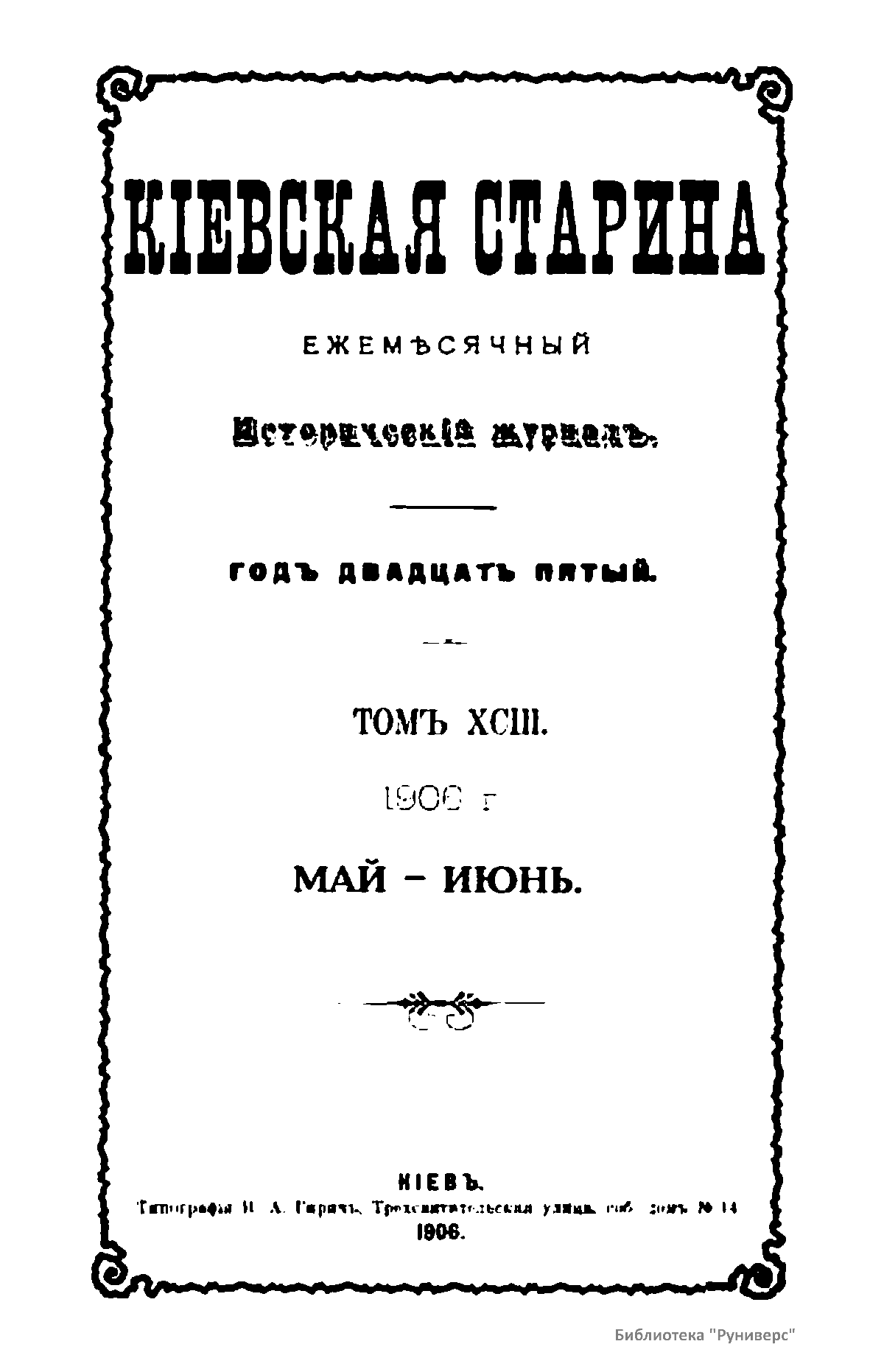 Киевская старина. Год двадцать пятый. Том XCIII. Май-Август 1906 г.