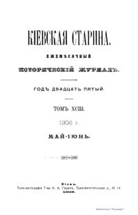 Кiевская старина. Годъ двадцать пятый. Томъ XCIII. Май-Августъ 1906 г.