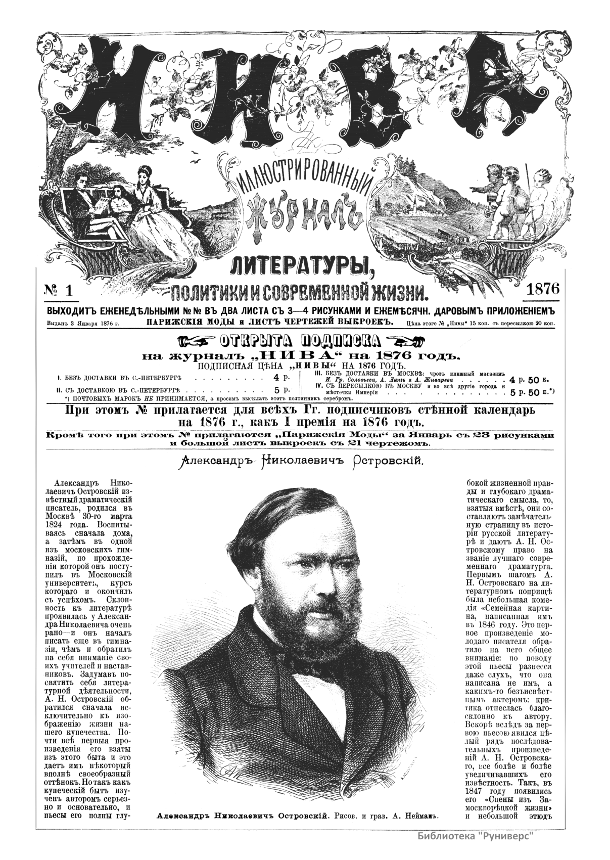 «Нива» — популярный еженедельный русский журнал с приложениями, издававшийся со второй половины XIX до начала XX века, носил подзаголовок «Журнал литературы, политики и современной жизни». Журнал был любимым детищем А. Ф. Маркса, возглавлявшего свое издательство вплоть до своей смерти в 1904 г. Позиционировалась «Нива» как иллюстрированный журнал для семейного чтения и был ориентирован, главным образом, на обывателя. В журнале публиковались литературные произведения, исторические, научно-популярные очерки, репродукции и гравюры картин современных художников. Материалы политического и общественного содержания также сопровождались многочисленными иллюстрациями. Среди известных литераторов, печатавшихся в журнале, были А. К. Толстой, Ф. И. Тютчев, Л. Н. Толстой, А. А. Фет, А. П. Чехов, Максим Горький, Корней Чуковский, Анна Ахматова, Иван Бунин и многие другие. Благодаря «Ниве» сочинения многих современных авторов добрались до самых отдаленных областей России.