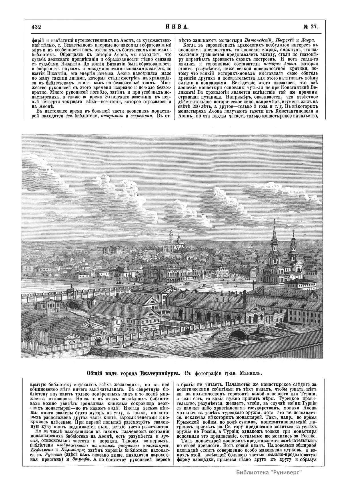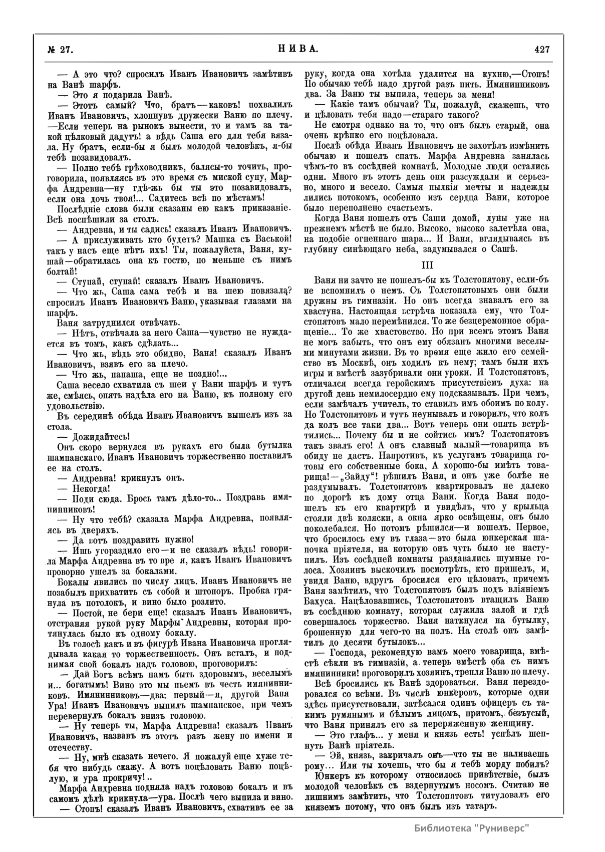 «Нива» — популярный еженедельный русский журнал с приложениями, издававшийся со второй половины XIX до начала XX века, носил подзаголовок «Журнал литературы, политики и современной жизни». Журнал был любимым детищем А. Ф. Маркса, возглавлявшего свое издательство вплоть до своей смерти в 1904 г. Позиционировалась «Нива» как иллюстрированный журнал для семейного чтения и был ориентирован, главным образом, на обывателя. В журнале публиковались литературные произведения, исторические, научно-популярные очерки, репродукции и гравюры картин современных художников. Материалы политического и общественного содержания также сопровождались многочисленными иллюстрациями. Среди известных литераторов, печатавшихся в журнале, были А. К. Толстой, Ф. И. Тютчев, Л. Н. Толстой, А. А. Фет, А. П. Чехов, Максим Горький, Корней Чуковский, Анна Ахматова, Иван Бунин и многие другие. Благодаря «Ниве» сочинения многих современных авторов добрались до самых отдаленных областей России.