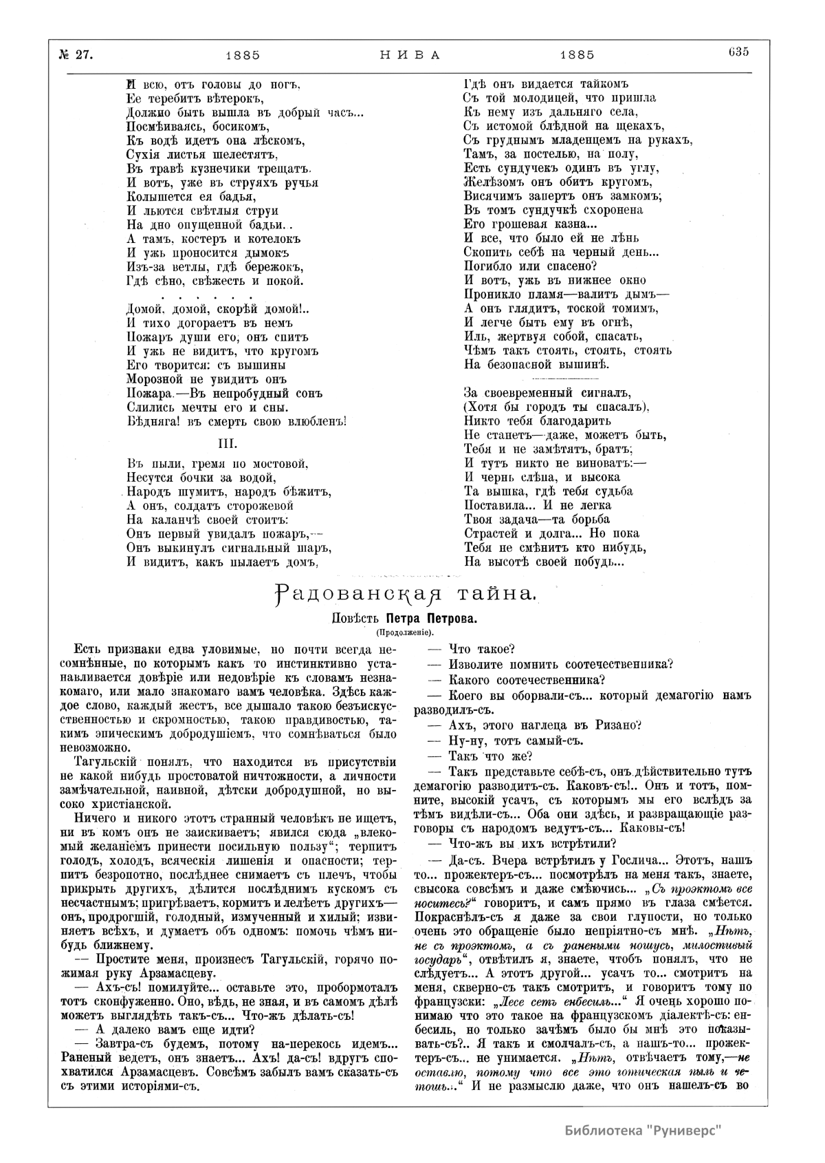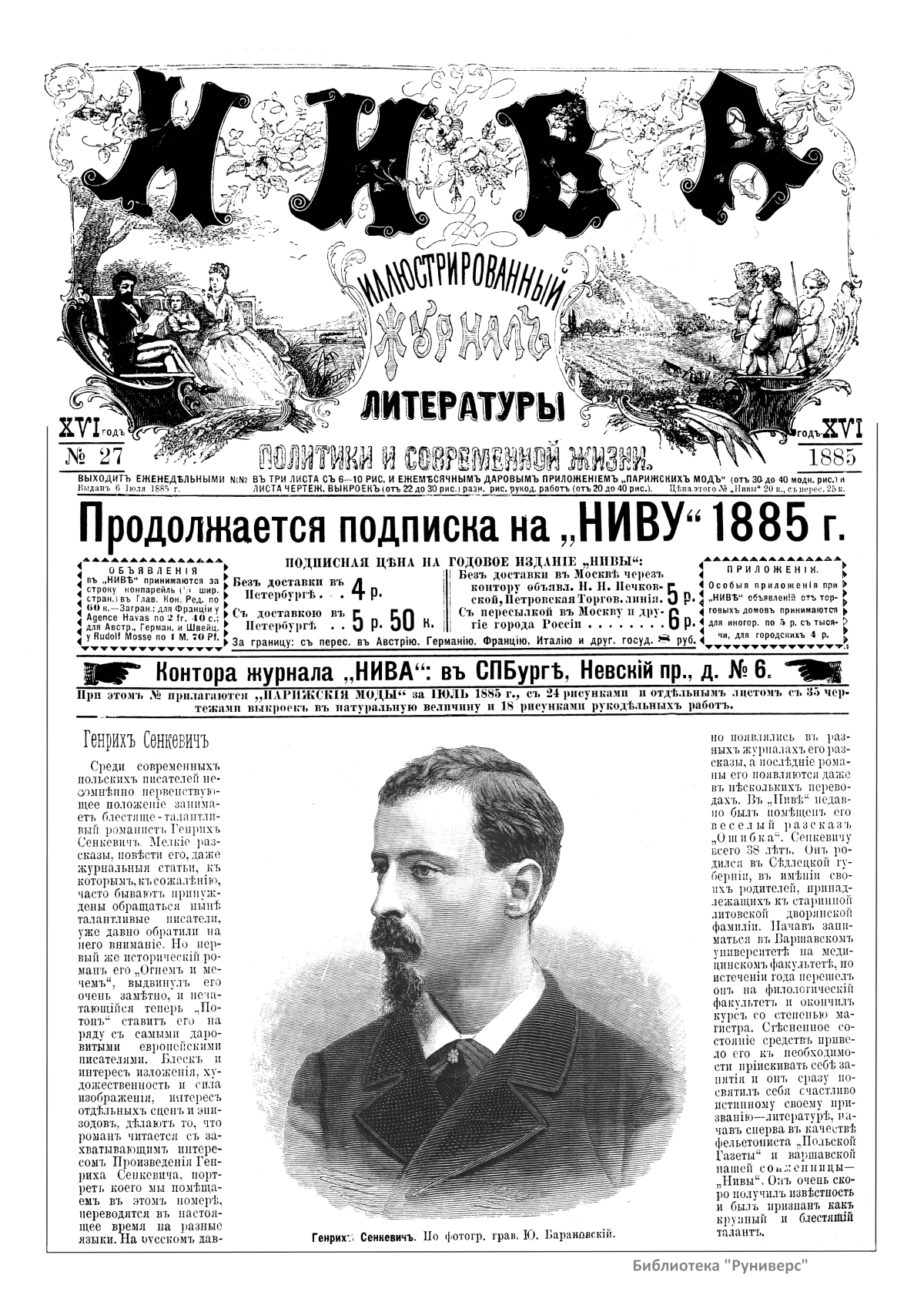 «Нива» — популярный еженедельный русский журнал с приложениями, издававшийся со второй половины XIX до начала XX века, носил подзаголовок «Журнал литературы, политики и современной жизни». Журнал был любимым детищем А. Ф. Маркса, возглавлявшего свое издательство вплоть до своей смерти в 1904 г. Позиционировалась «Нива» как иллюстрированный журнал для семейного чтения и был ориентирован, главным образом, на обывателя. В журнале публиковались литературные произведения, исторические, научно-популярные очерки, репродукции и гравюры картин современных художников. Материалы политического и общественного содержания также сопровождались многочисленными иллюстрациями. Среди известных литераторов, печатавшихся в журнале, были А. К. Толстой, Ф. И. Тютчев, Л. Н. Толстой, А. А. Фет, А. П. Чехов, Максим Горький, Корней Чуковский, Анна Ахматова, Иван Бунин и многие другие. Благодаря «Ниве» сочинения многих современных авторов добрались до самых отдаленных областей России.