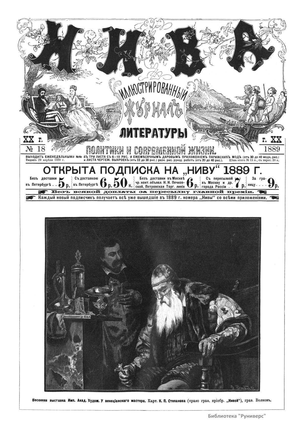 «Нива» — популярный еженедельный русский журнал с приложениями, издававшийся со второй половины XIX до начала XX века, носил подзаголовок «Журнал литературы, политики и современной жизни». Журнал был любимым детищем А. Ф. Маркса, возглавлявшего свое издательство вплоть до своей смерти в 1904 г. Позиционировалась «Нива» как иллюстрированный журнал для семейного чтения и был ориентирован, главным образом, на обывателя. В журнале публиковались литературные произведения, исторические, научно-популярные очерки, репродукции и гравюры картин современных художников. Материалы политического и общественного содержания также сопровождались многочисленными иллюстрациями. Среди известных литераторов, печатавшихся в журнале, были А. К. Толстой, Ф. И. Тютчев, Л. Н. Толстой, А. А. Фет, А. П. Чехов, Максим Горький, Корней Чуковский, Анна Ахматова, Иван Бунин и многие другие. Благодаря «Ниве» сочинения многих современных авторов добрались до самых отдаленных областей России.