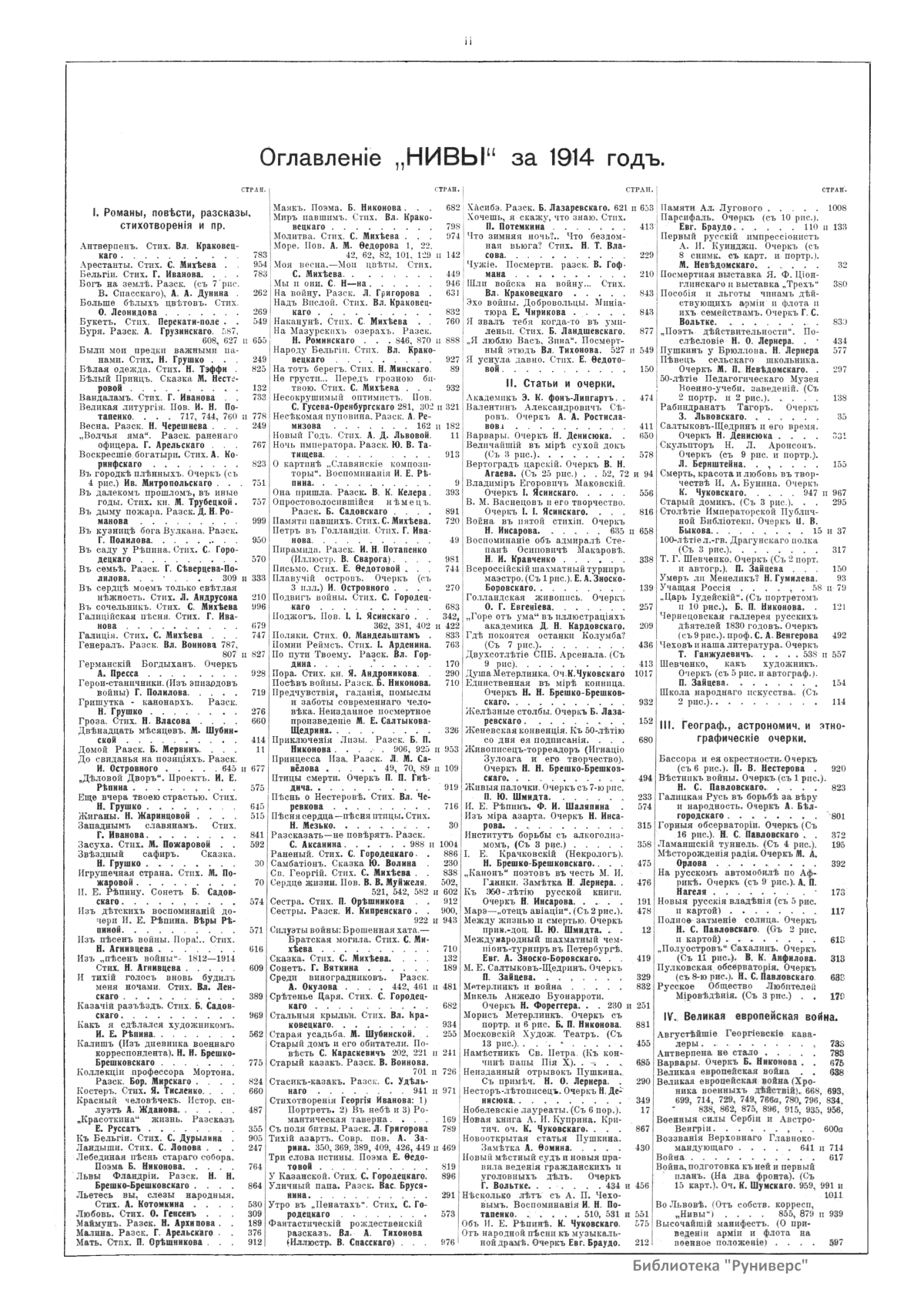 «Нива» — популярный еженедельный русский журнал с приложениями, издававшийся со второй половины XIX до начала XX века, носил подзаголовок «Журнал литературы, политики и современной жизни». Журнал был любимым детищем А. Ф. Маркса, возглавлявшего свое издательство вплоть до своей смерти в 1904 г. Позиционировалась «Нива» как иллюстрированный журнал для семейного чтения и был ориентирован, главным образом, на обывателя. В журнале публиковались литературные произведения, исторические, научно-популярные очерки, репродукции и гравюры картин современных художников. Материалы политического и общественного содержания также сопровождались многочисленными иллюстрациями. Среди известных литераторов, печатавшихся в журнале, были А. К. Толстой, Ф. И. Тютчев, Л. Н. Толстой, А. А. Фет, А. П. Чехов, Максим Горький, Корней Чуковский, Анна Ахматова, Иван Бунин и многие другие. Благодаря «Ниве» сочинения многих современных авторов добрались до самых отдаленных областей России.
