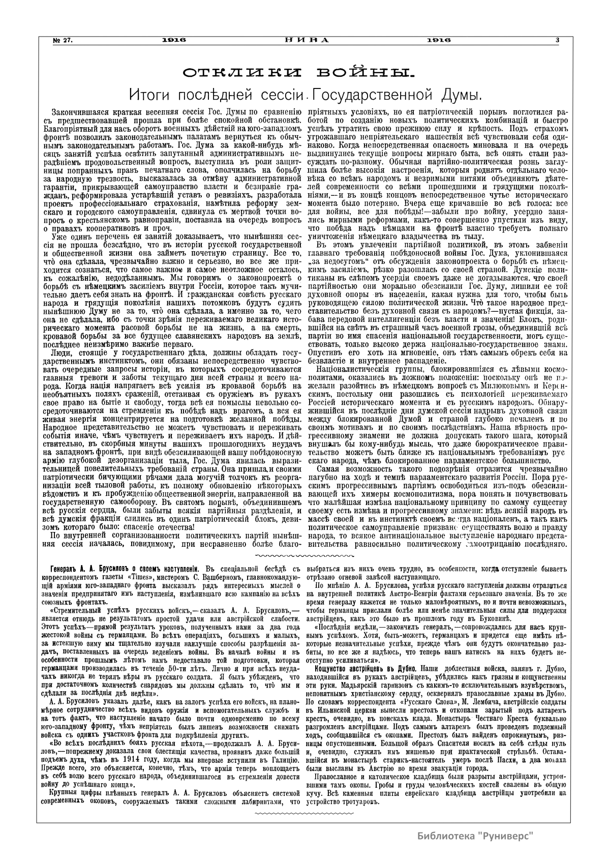 Нива. Годъ XLVII. №27-52. 1916