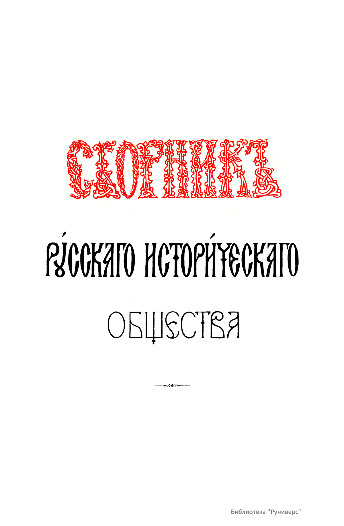 Сборники Русского исторического общества (РИО) – крупнейшая серийная публикация источников по истории России XVIII–XIX веков. За пятьдесят лет существования Общества (1866–1916) было выпущено 148 томов Сборника. Тематика опубликованных в Сборнике материалов обширна и включает в себя документы, относящиеся как к внутренней, так и внешней политике государства. Среди них можно выделить шесть крупных серий: «Материалы по истории Екатерининской комиссии для сочинения проекта нового Уложения 1767 г.», «Бумаги Екатерины II», «Материалы для истории высших государственных учреждений России в XVIII в.», «Материалы для политической и бытовой истории в 1812 г.», «Дипломатическая переписка иностранных послов и посланников при русском дворе», «Памятники дипломатических отношений древней России с державами иностранными», включающие документы XV–XVII веков, перешедшие в РИО от Второго отделения императорской канцелярии. Помимо этих серий в Сборнике публиковались личные бумаги Петра I, Петра II, Екатерины I, Александра I, Николая I, Александра II, а также документы, связанные с деятельностью видных государственных сановников. В Сборнике выходили отчёты о годичных собраниях РИО. Во время подготовки издания Русского биографического словаря в томах 60 и 62 был помещён Азбучный указатель имён русских деятелей для словаря. Основная работа по подготовке издания Сборника лежала на ответственных секретарях РИО. Первым таким секретарём стал один из наиболее деятельных организаторов Общества А. А. Половцев. В разное время в работе Общества принимали участие крупные историки: С. М. Соловьёв, В. О. Ключевский, Н. И. Костомаров, Н. Ф. Дубровин, П. П. Пекарский, В. И. Сергеевич, Я. К. Грот, А. Н. Филиппов, И. Е. Забелин, А. Н. Пыпин, С. Ф. Платонов, В. С. Иконников, Н. Д. Чечулин, А. Н. Попов.