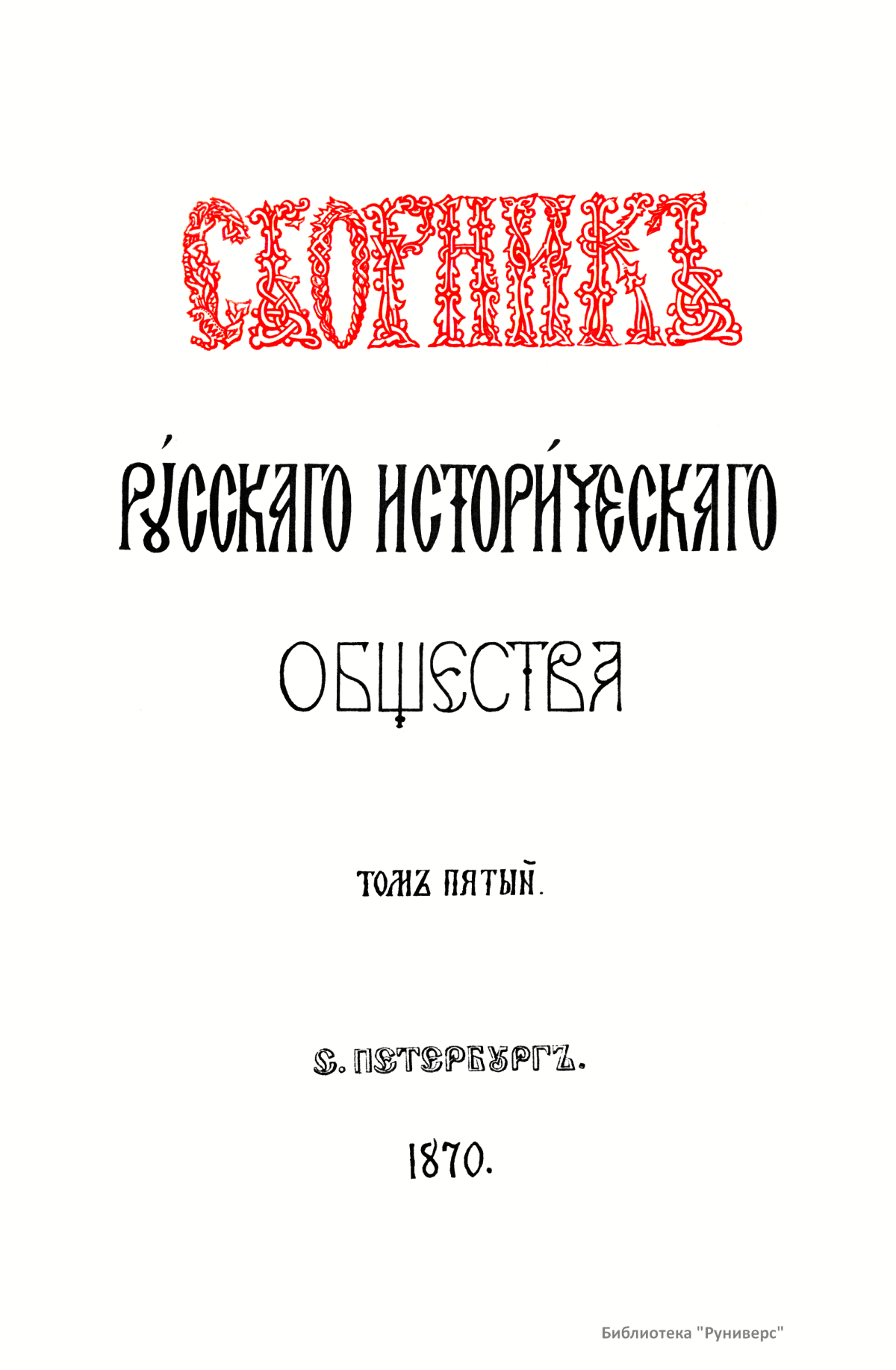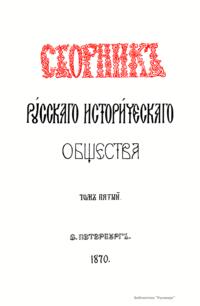 Сборникъ Русскаго историческаго общества. Томъ пятый