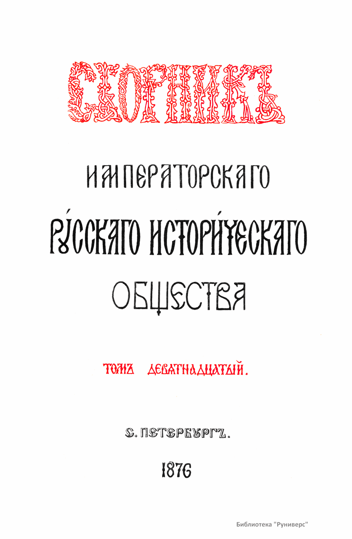 Сборникъ Русскаго историческаго общества. Томъ девятнадцатый