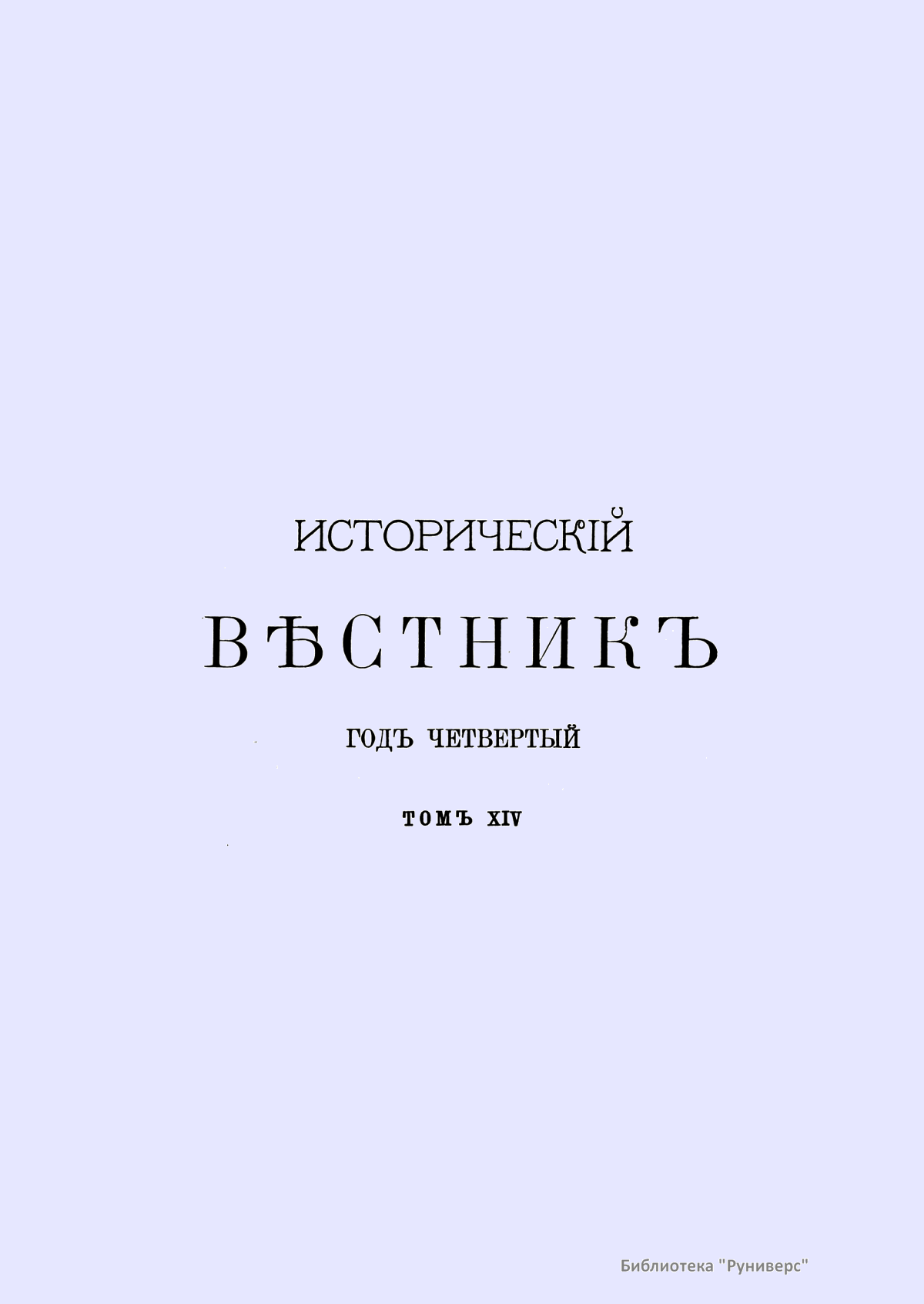 Историческiй вѣстникъ. Историко-литературный журналъ. Томъ XIV