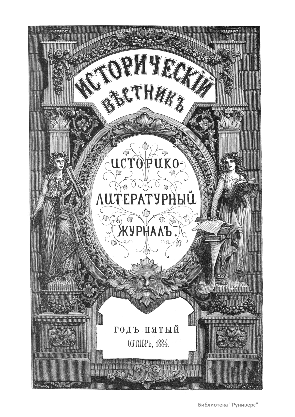 «Исторический вестник» - русский ежемесячный историко-литературный журнал. Издавался в Санкт-Петербурге с 1880-го по 1917 г. Журнал был основан А.С. Сувориным и С.Н. Шубинским с целью «знакомить читателей в живой, общедоступной форме с современным состоянием исторической науки и литературы в России и Европе». Вышло 150 тт. Каждый том состоял из трёх ежемесячных выпусков, имел свою нумерацию страниц, оглавление, список иллюстраций. Журнал приобрёл устойчивую популярность среди читателей, заняв прочное место в «триумвирате» русских исторических журналов наряду с «Русским архивом» и «Русской стариной». опережая их по количеству подписчиков. Отличием «Исторического вестника» было то, что он не помещал на своих страницах необработанных, сырых материалов. С другой стороны, журнал приближался по своему типу к журналам общелитературного образца, сочетая в себе коммерческий успех и доступное изложение материала.