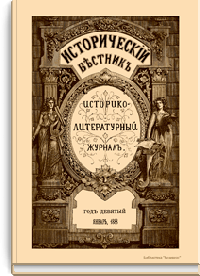 «Исторический вестник» - русский ежемесячный историко-литературный журнал. Издавался в Санкт-Петербурге с 1880-го по 1917 г. Журнал был основан А.С. Сувориным и С.Н. Шубинским с целью «знакомить читателей в живой, общедоступной форме с современным состоянием исторической науки и литературы в России и Европе». Вышло 150 тт. Каждый том состоял из трёх ежемесячных выпусков, имел свою нумерацию страниц, оглавление, список иллюстраций. Журнал приобрёл устойчивую популярность среди читателей, заняв прочное место в «триумвирате» русских исторических журналов наряду с «Русским архивом» и «Русской стариной». опережая их по количеству подписчиков. Отличием «Исторического вестника» было то, что он не помещал на своих страницах необработанных, сырых материалов. С другой стороны, журнал приближался по своему типу к журналам общелитературного образца, сочетая в себе коммерческий успех и доступное изложение материала.