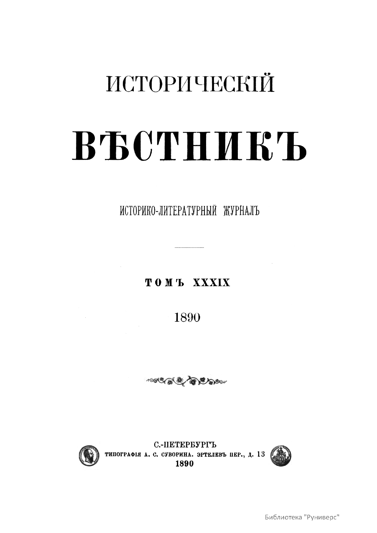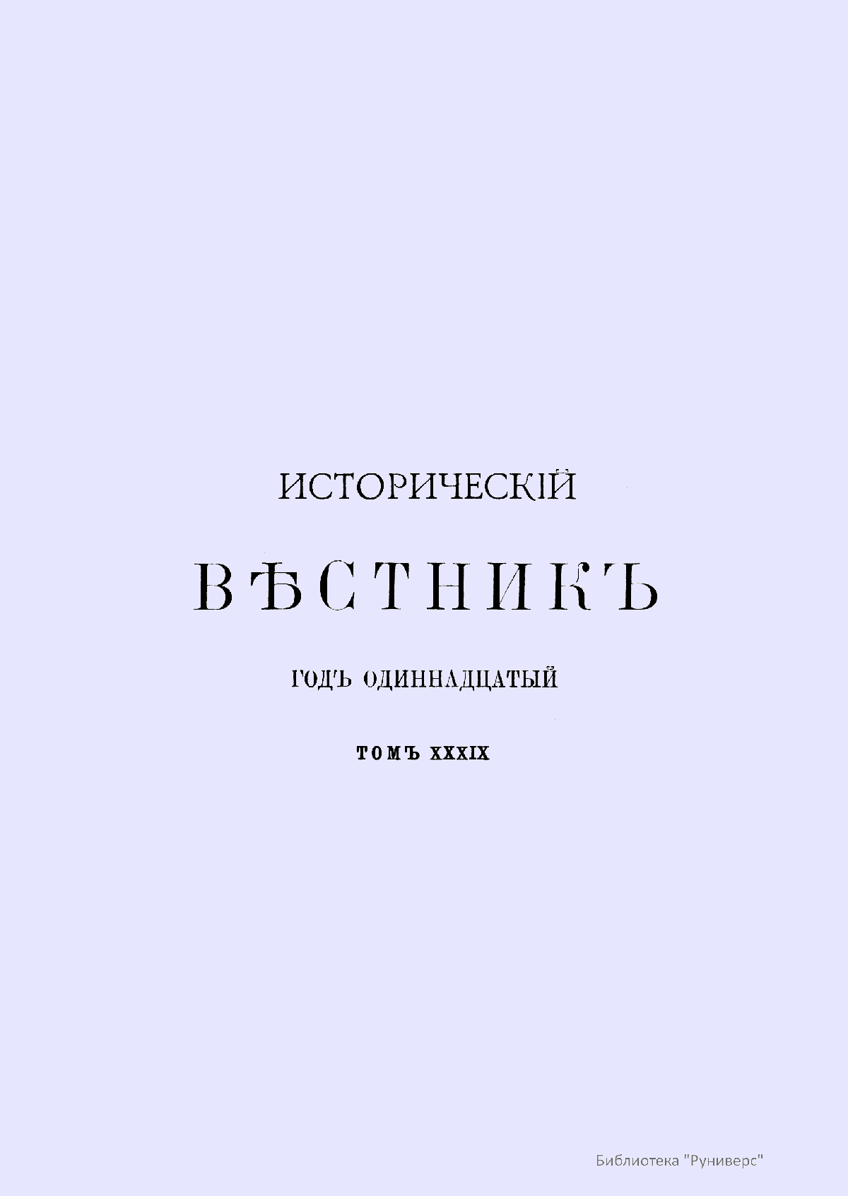 Исторический вестник. Историко-литературный журнал. Том XXXIX