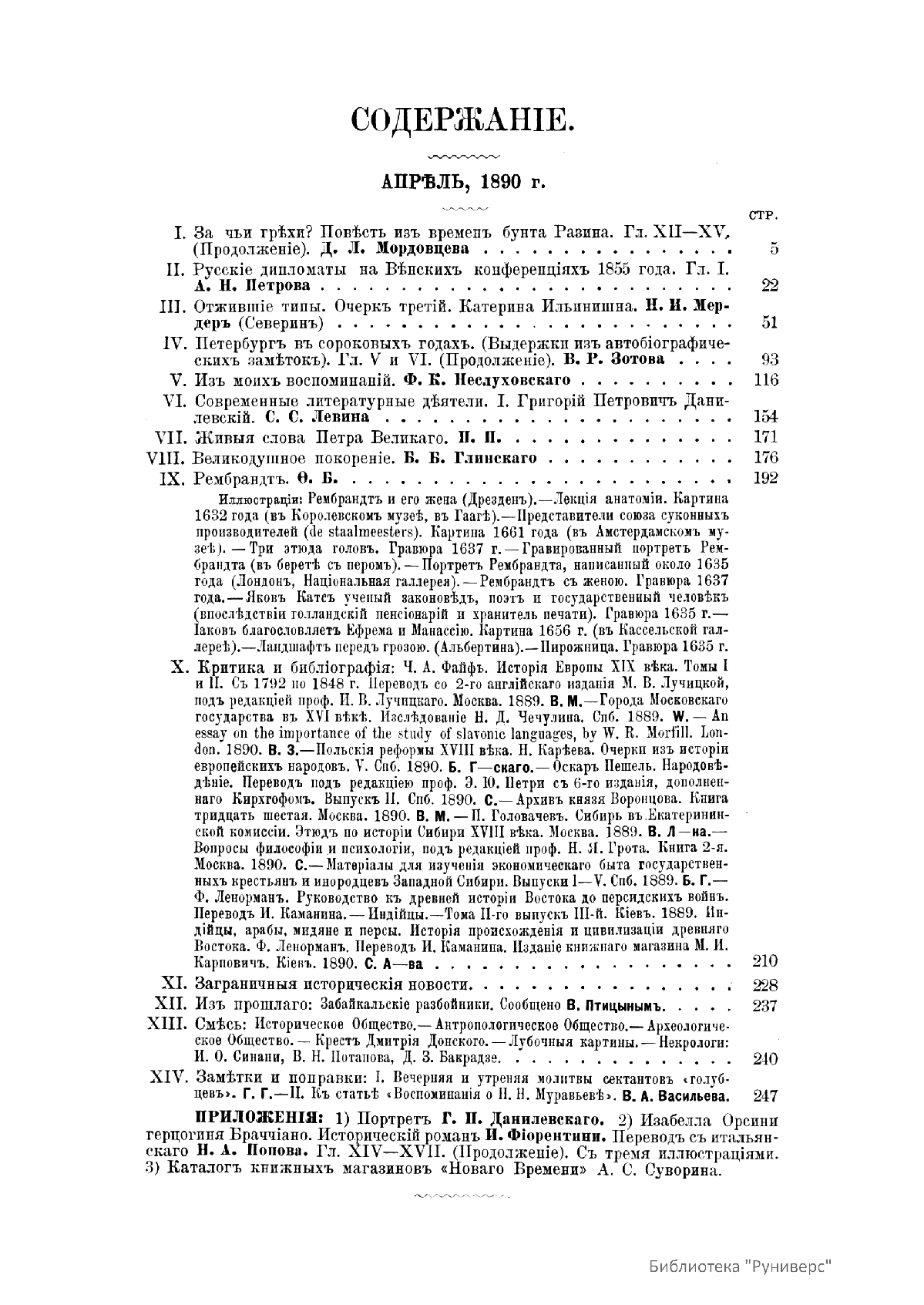 «Исторический вестник» - русский ежемесячный историко-литературный журнал. Издавался в Санкт-Петербурге с 1880-го по 1917 г. Журнал был основан А.С. Сувориным и С.Н. Шубинским с целью «знакомить читателей в живой, общедоступной форме с современным состоянием исторической науки и литературы в России и Европе». Вышло 150 тт. Каждый том состоял из трёх ежемесячных выпусков, имел свою нумерацию страниц, оглавление, список иллюстраций. Журнал приобрёл устойчивую популярность среди читателей, заняв прочное место в «триумвирате» русских исторических журналов наряду с «Русским архивом» и «Русской стариной». опережая их по количеству подписчиков. Отличием «Исторического вестника» было то, что он не помещал на своих страницах необработанных, сырых материалов. С другой стороны, журнал приближался по своему типу к журналам общелитературного образца, сочетая в себе коммерческий успех и доступное изложение материала.