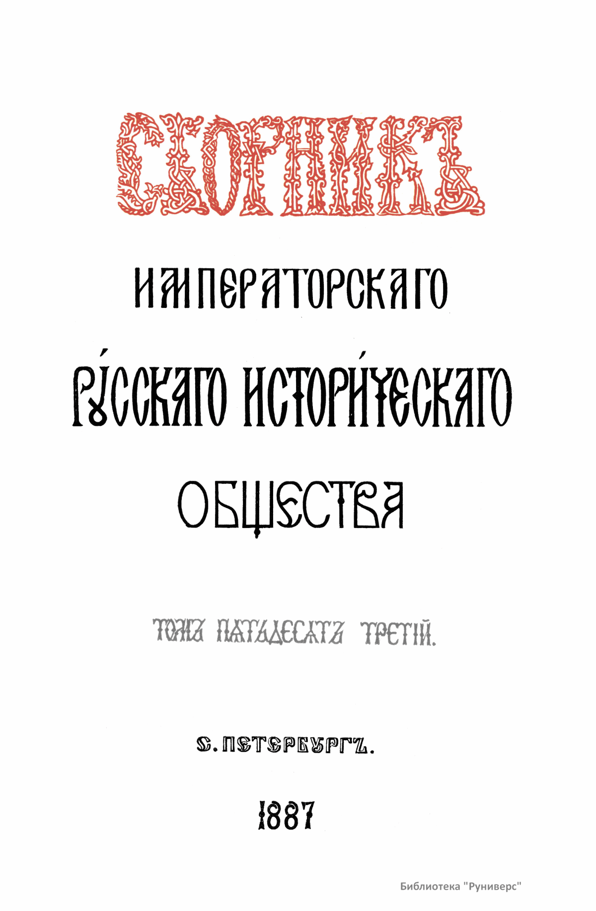 Сборникъ Русскаго историческаго общества. Томъ пятьдесятъ третiй