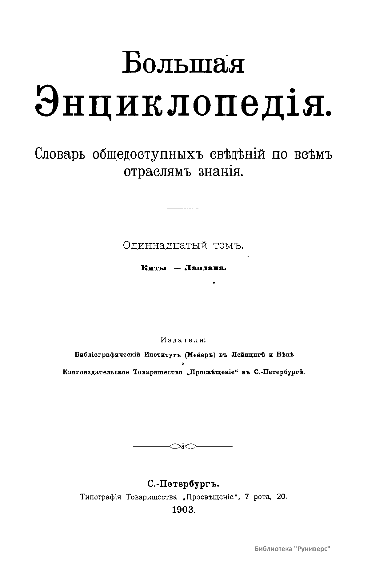 Большая Энциклопедiя. Одиннадцатый томъ. Киты - Ландана