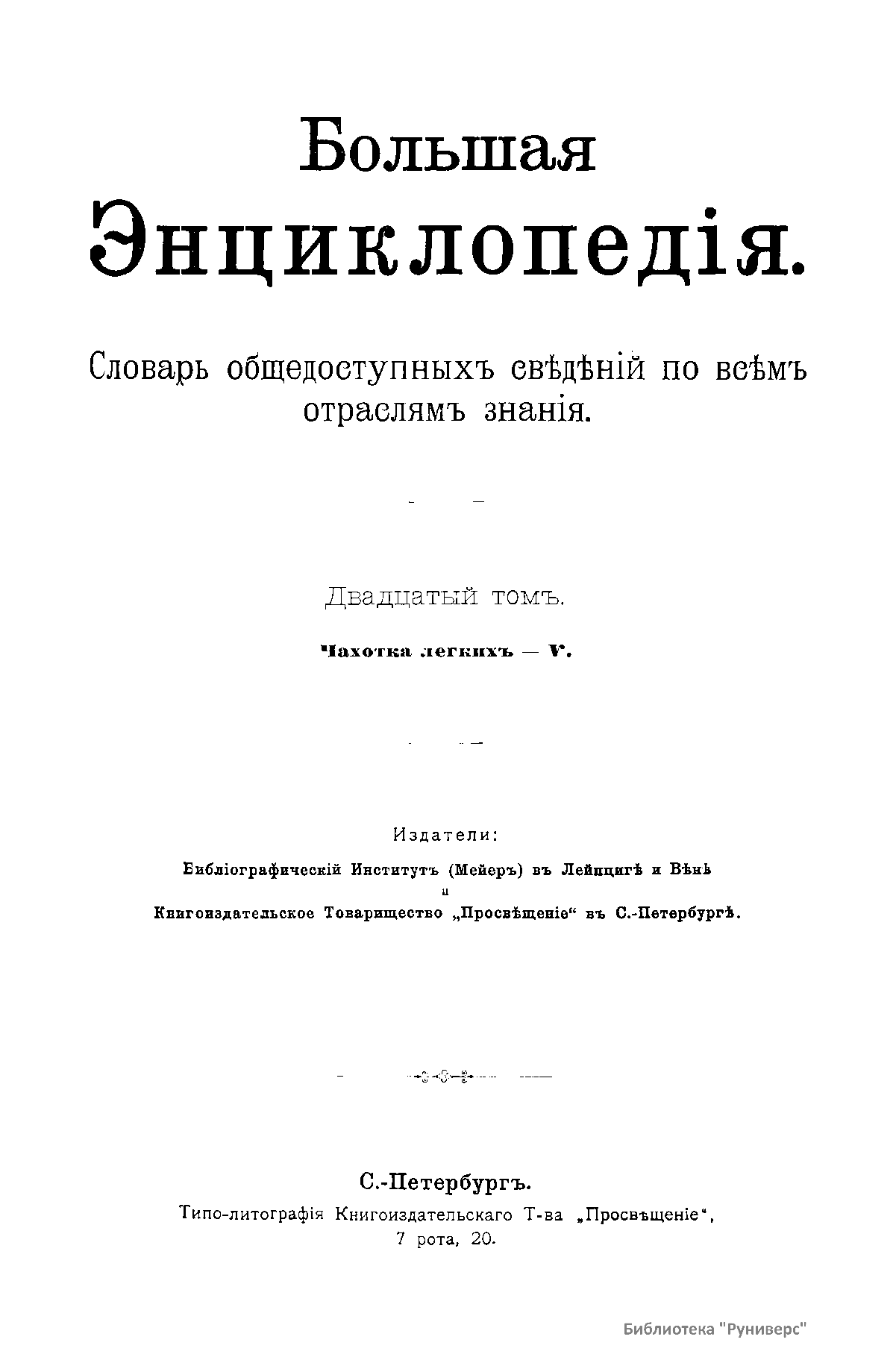 Большая Энциклопедия. Двадцатый том. Чахотка легких - V