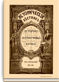 «Исторический вестник» - русский ежемесячный историко-литературный журнал. Издавался в Санкт-Петербурге с 1880-го по 1917 г. Журнал был основан А.С. Сувориным и С.Н. Шубинским с целью «знакомить читателей в живой, общедоступной форме с современным состоянием исторической науки и литературы в России и Европе». Вышло 150 тт. Каждый том состоял из трёх ежемесячных выпусков, имел свою нумерацию страниц, оглавление, список иллюстраций. Журнал приобрёл устойчивую популярность среди читателей, заняв прочное место в «триумвирате» русских исторических журналов наряду с «Русским архивом» и «Русской стариной». опережая их по количеству подписчиков. Отличием «Исторического вестника» было то, что он не помещал на своих страницах необработанных, сырых материалов. С другой стороны, журнал приближался по своему типу к журналам общелитературного образца, сочетая в себе коммерческий успех и доступное изложение материала.