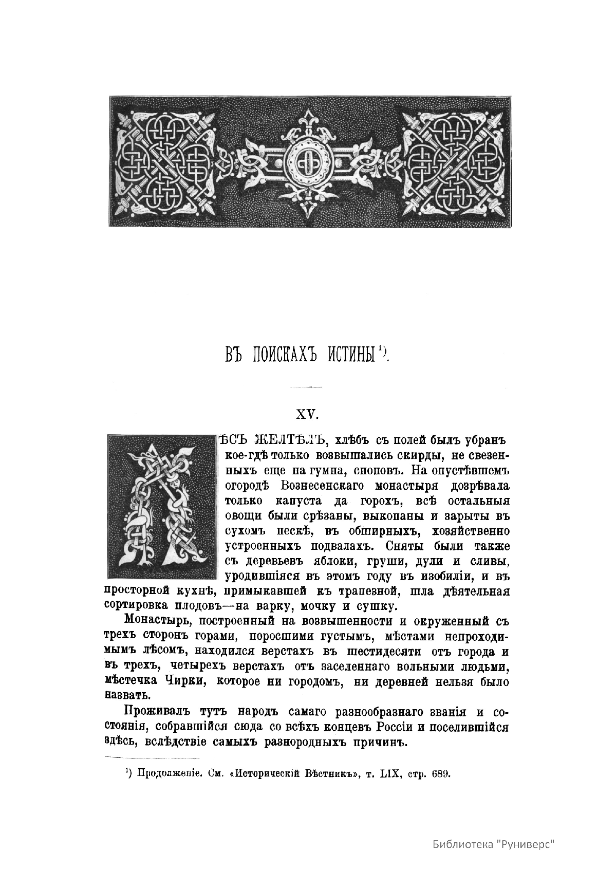 «Исторический вестник» - русский ежемесячный историко-литературный журнал. Издавался в Санкт-Петербурге с 1880-го по 1917 г. Журнал был основан А.С. Сувориным и С.Н. Шубинским с целью «знакомить читателей в живой, общедоступной форме с современным состоянием исторической науки и литературы в России и Европе». Вышло 150 тт. Каждый том состоял из трёх ежемесячных выпусков, имел свою нумерацию страниц, оглавление, список иллюстраций. Журнал приобрёл устойчивую популярность среди читателей, заняв прочное место в «триумвирате» русских исторических журналов наряду с «Русским архивом» и «Русской стариной». опережая их по количеству подписчиков. Отличием «Исторического вестника» было то, что он не помещал на своих страницах необработанных, сырых материалов. С другой стороны, журнал приближался по своему типу к журналам общелитературного образца, сочетая в себе коммерческий успех и доступное изложение материала.