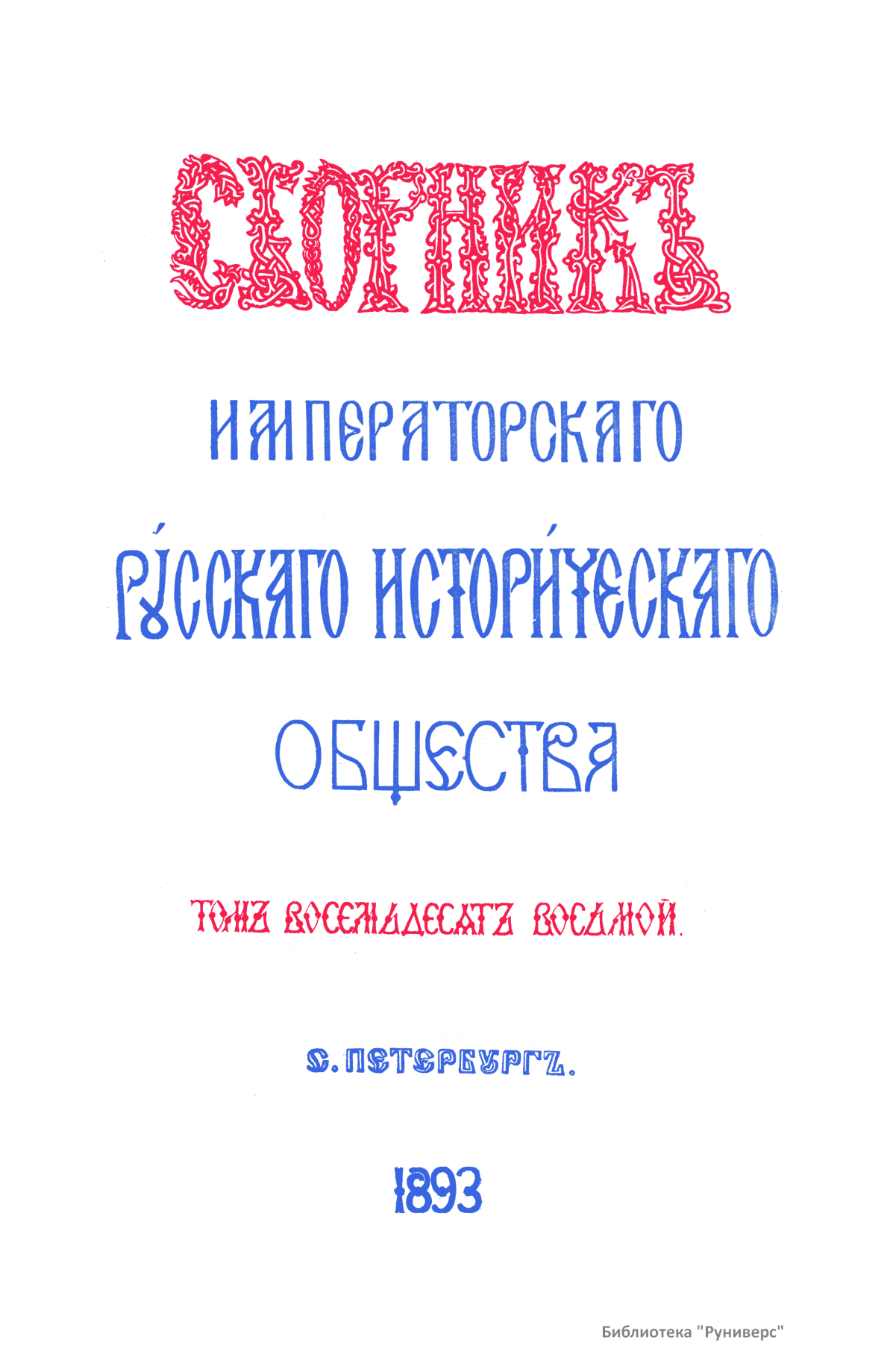 Сборникъ Русскаго историческаго общества. Томъ восемьдесятъ восьмой