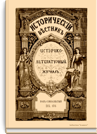 «Исторический вестник» - русский ежемесячный историко-литературный журнал. Издавался в Санкт-Петербурге с 1880-го по 1917 г. Журнал был основан А.С. Сувориным и С.Н. Шубинским с целью «знакомить читателей в живой, общедоступной форме с современным состоянием исторической науки и литературы в России и Европе». Вышло 150 тт. Каждый том состоял из трёх ежемесячных выпусков, имел свою нумерацию страниц, оглавление, список иллюстраций. Журнал приобрёл устойчивую популярность среди читателей, заняв прочное место в «триумвирате» русских исторических журналов наряду с «Русским архивом» и «Русской стариной». опережая их по количеству подписчиков. Отличием «Исторического вестника» было то, что он не помещал на своих страницах необработанных, сырых материалов. С другой стороны, журнал приближался по своему типу к журналам общелитературного образца, сочетая в себе коммерческий успех и доступное изложение материала.