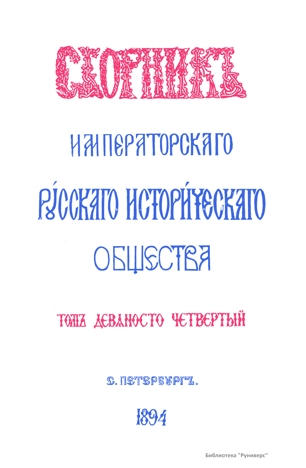 Сборникъ Русскаго историческаго общества. Томъ девяносто четвертый