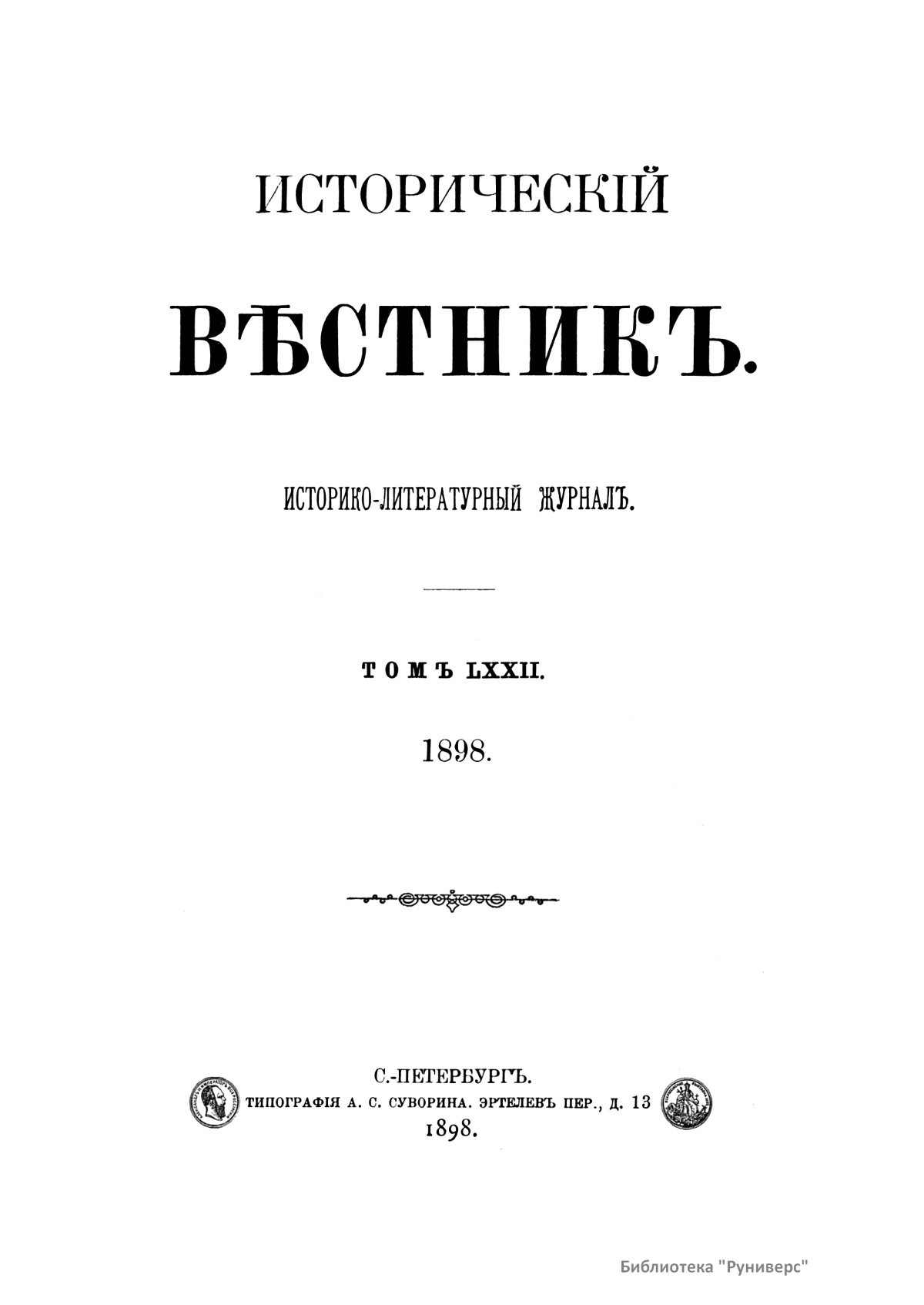 Исторический вестник. Историко-литературный журнал. Том LXXII